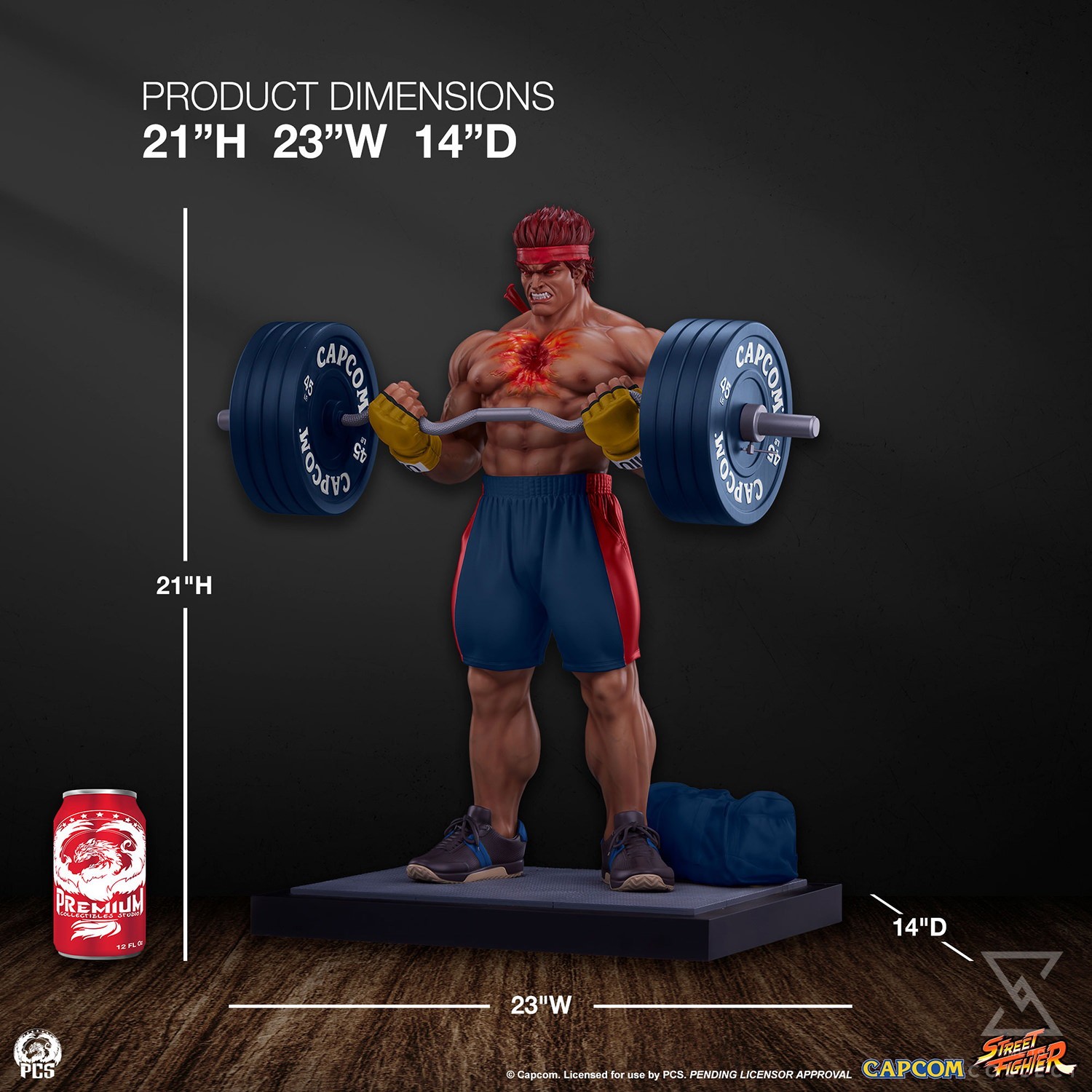 The next piece in the fitness themed Street Fighter line stands over 21” tall and 23” wide, displaying Ryu’s perfect form and unbreakable concentration as he curls an incredible weight with ease.