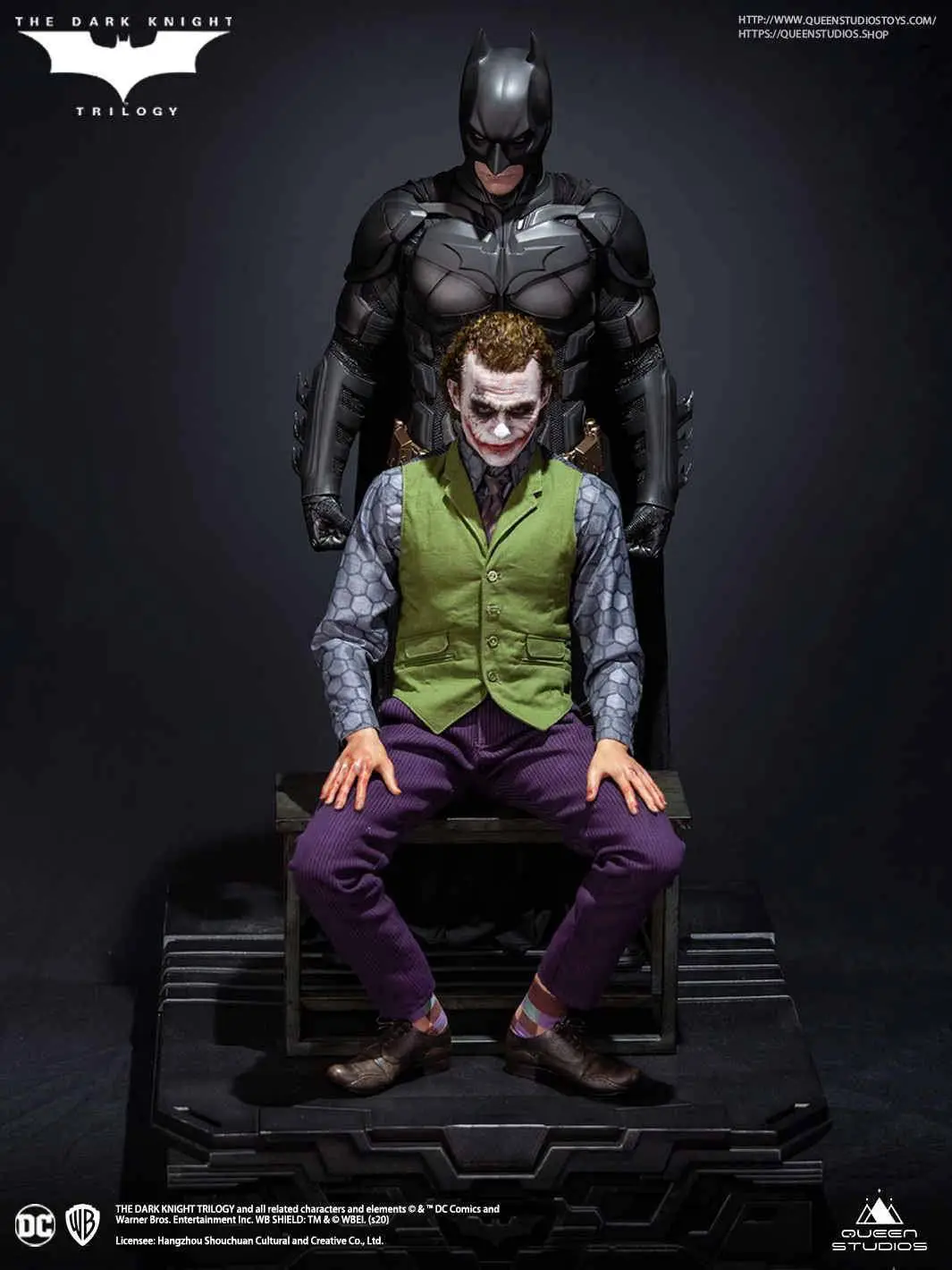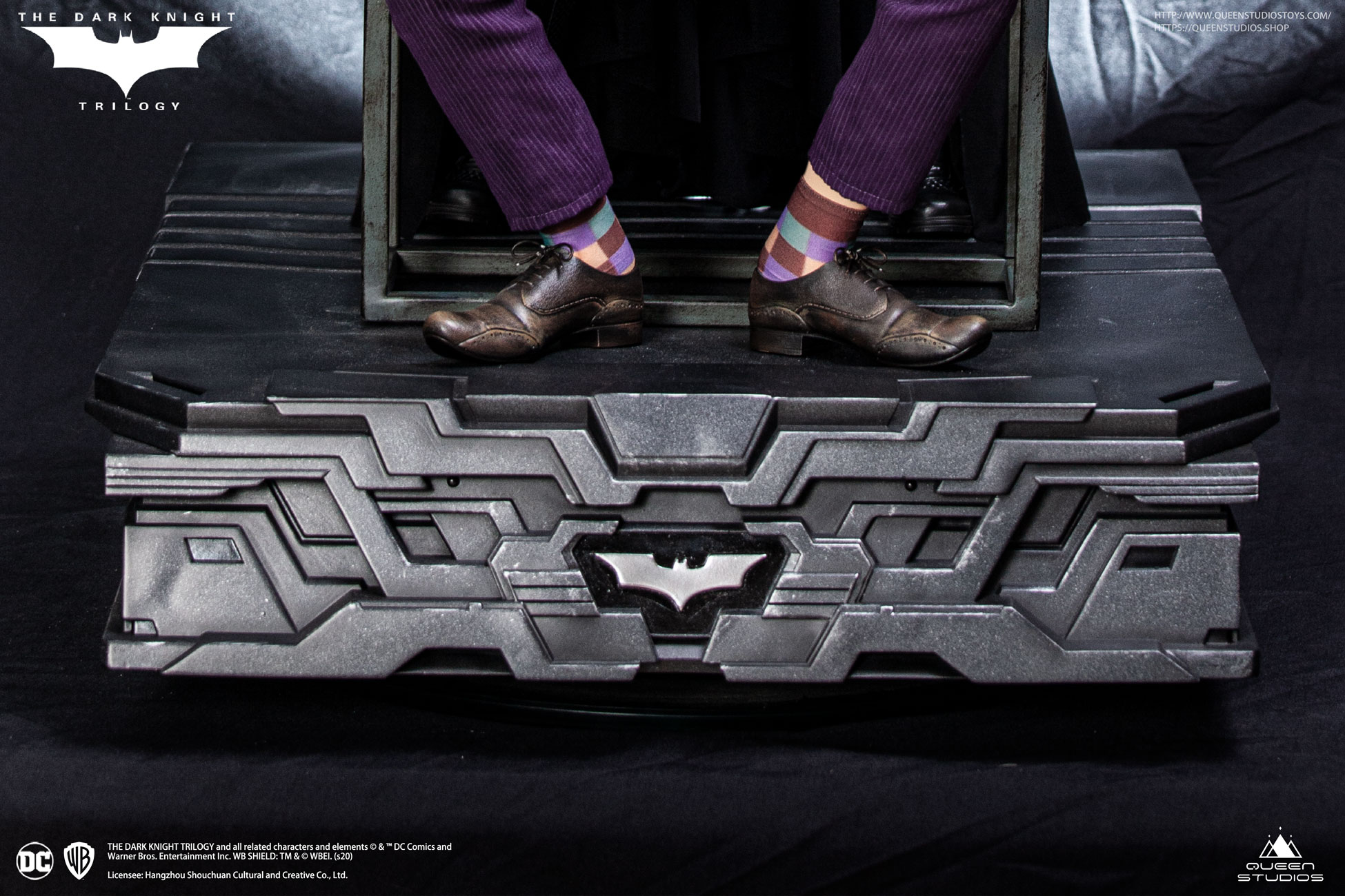 While the second is an extended base which can be used to display Batman alongside the Queen Studios 1:3 Joker statue, recreating the iconic interrogation scene.