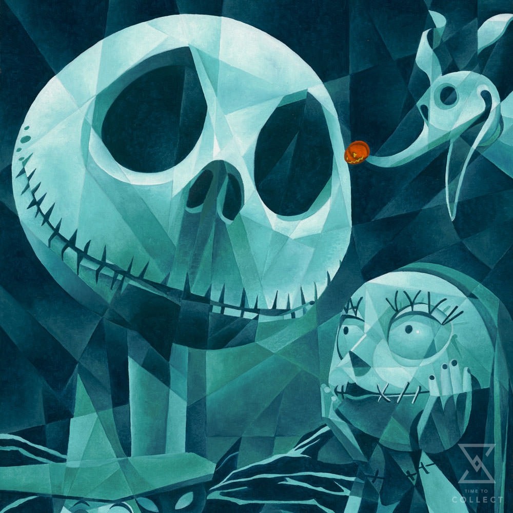 The citizens of Halloween Town bid you welcome in this spooky Disney fine art print featuring Jack Skellington, Sally, and Oogie Boogie. Each ready-to-hang gallery-wrapped canvas print is hand-signed and hand-numbered by the artist, features studio embellishments, and includes a Certificate of Authenticity from a limited edition of 195 pieces.