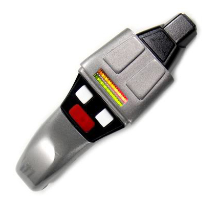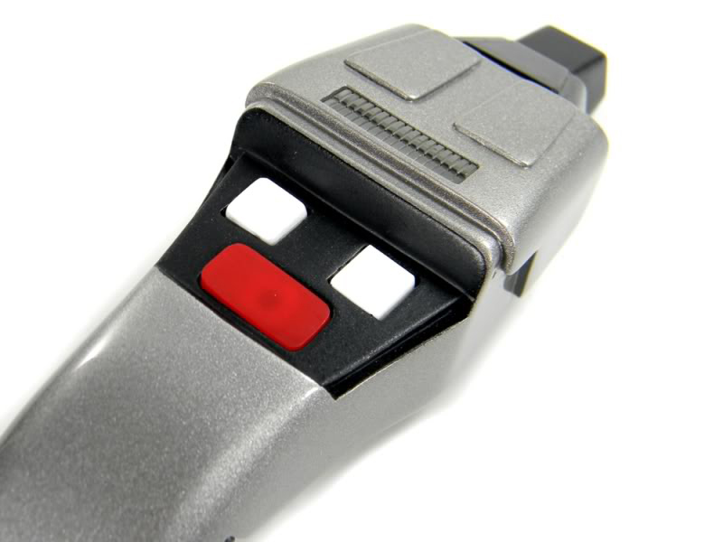 A third design from First Contact is the smaller hand phaser, with “LED indicator, push buttons, working phaser “trigger”, emitter light and a rechargeable battery are all included. Additionally, there’s an internal energy coil detail between phaser emitter and panel. Sound bytes, accurate to scene“.