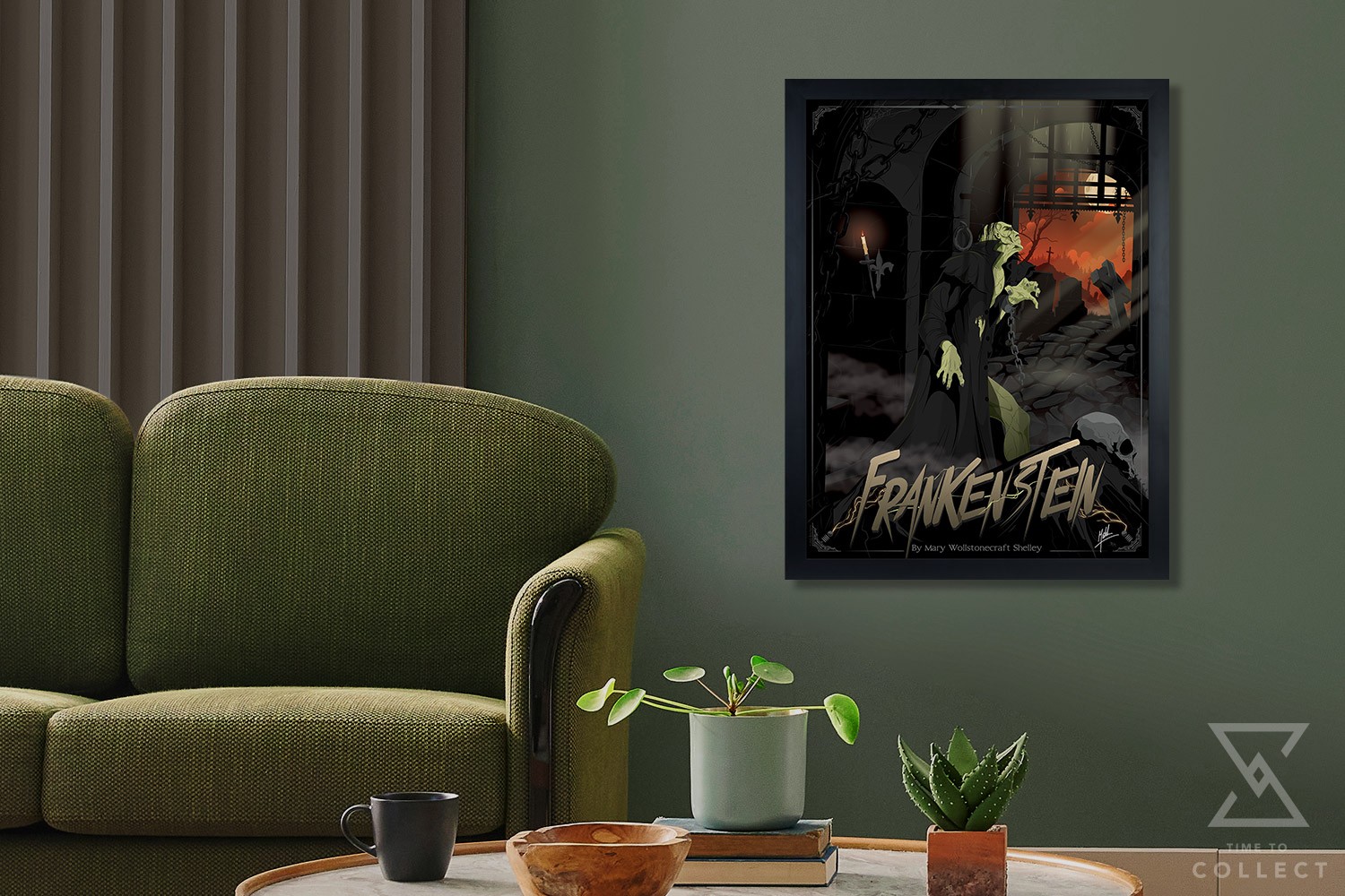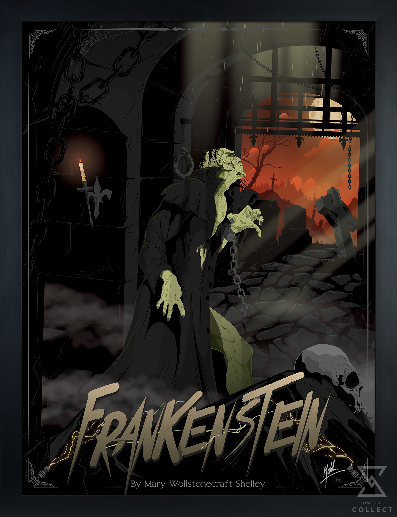 Each Frankenstein Fine Art Print in the collaborative release with Sideshow features an authorized, automated artist signature in the lower region of the full bleed giclée image. Available unframed or in a custom framed presentation, this melancholy tribute to The Modern Prometheus belongs in human society — and namely, on your walls!