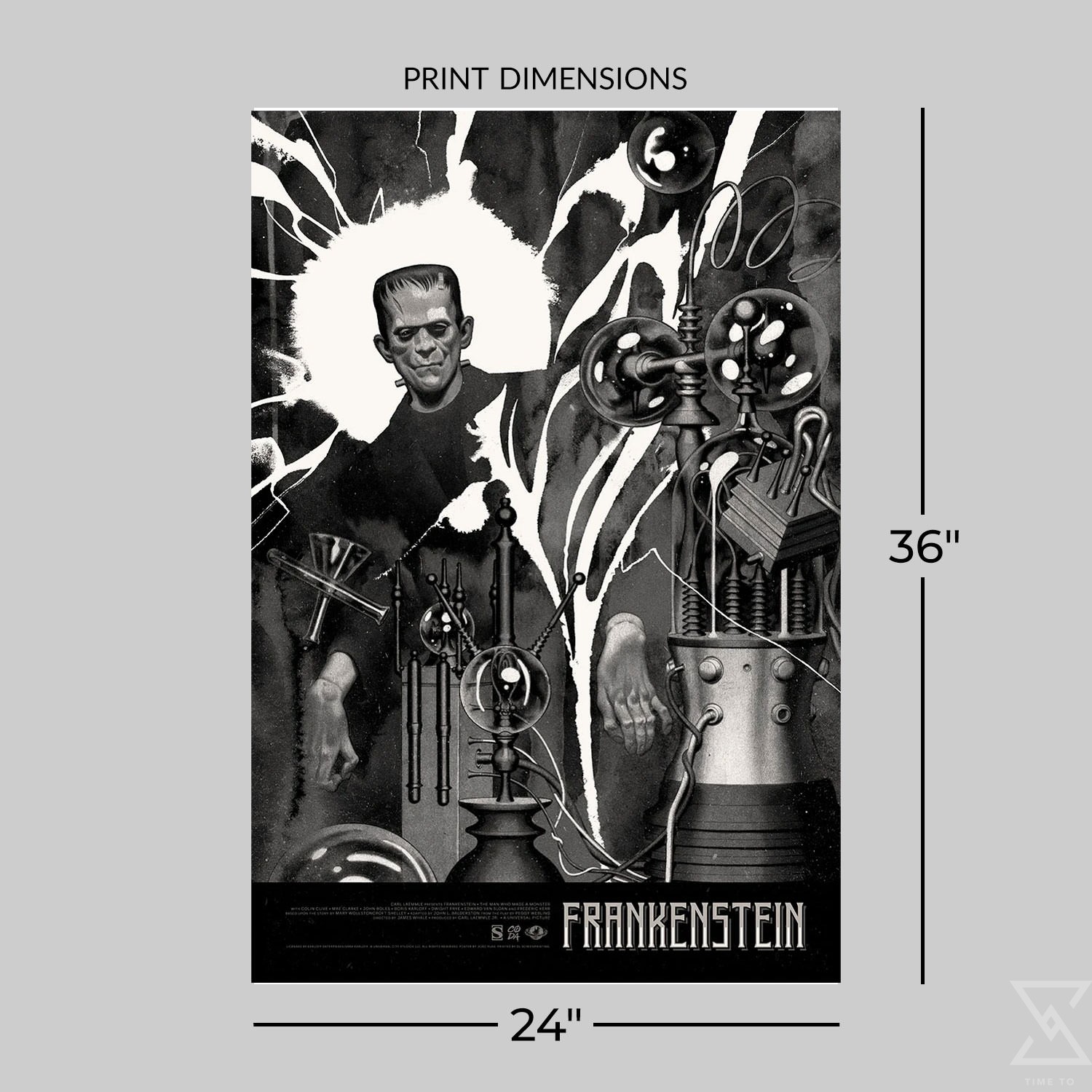 Enter Frankenstein’s laboratory and behold a new creation in this haunting artwork for James Whale’s 1931 classic Frankenstein. Officially licensed by Sideshow and limited to 200 hand-numbered pieces, this 24″ x 36″ screenprint will make a perfect addition to any fan’s collection of horror movie posters and Universal Monsters collectibles.
