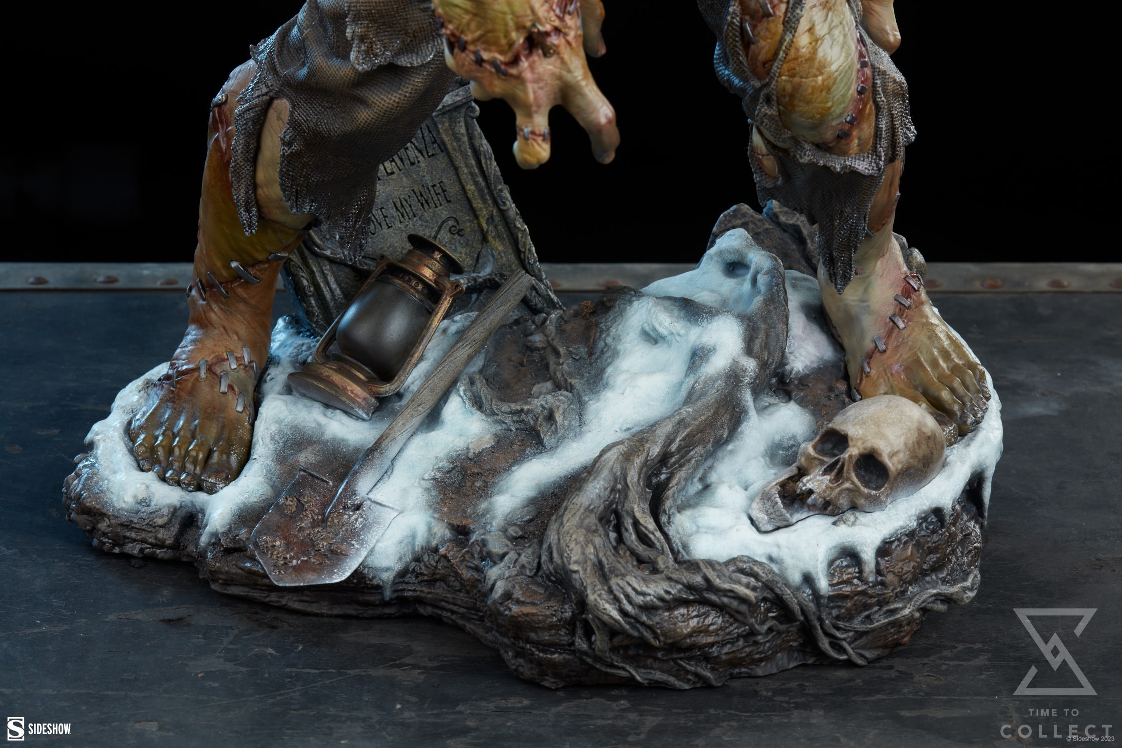 First brought to life by the words of Mary Shelley, the creation known as Frankenstein’s Monster has taken on many forms throughout popular culture. Sideshow’s new depiction honors the creature’s horror roots and tragic nature in a melancholy cemetery scene. Frankenstein’s Monster lurches through the biting cold, crossing a snow-dusted grave where a lantern, shovel, and broken skull rest. The headstone bears an epitaph to Elizabeth Lavenza, the would-be bride of Victor Frankenstein and victim to the monster’s vengeance.