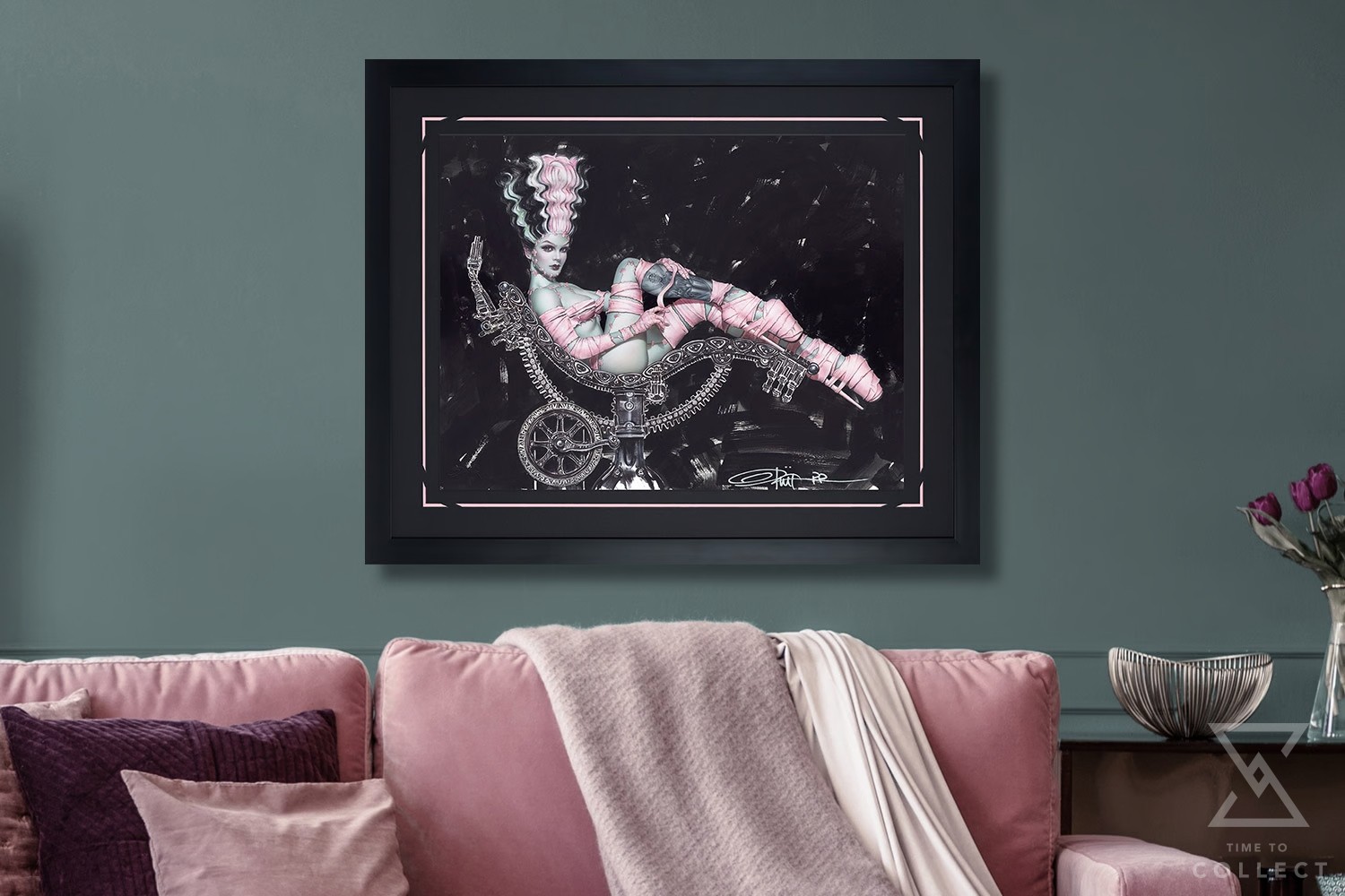 Each Frankie Reborn Fine Art Print is hand-signed by Olivia herself and features her official embossed Seal of Authenticity along with a hand-signed Certificate of Authenticity as a part of the limited edition of 300 pieces. This high-fidelity reproduction of Olivia’s original acrylic on wood painting is available to fans as an unframed giclée with deckled hand-torn edges or in a custom framed presentation. Whether you’re a pinup enthusiast or a horror art collector, you won’t want to miss adding this Frankenstein creation to your collection!