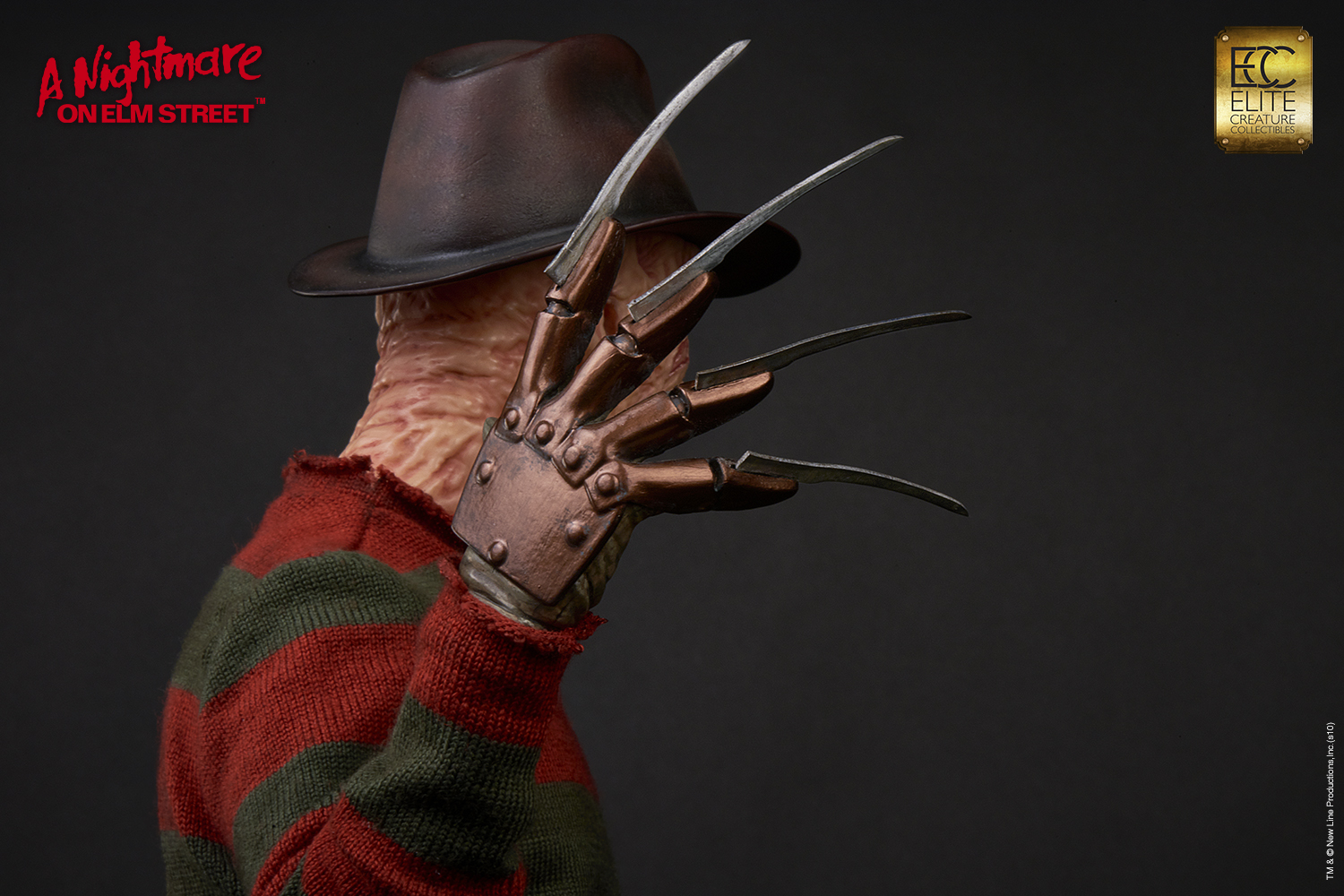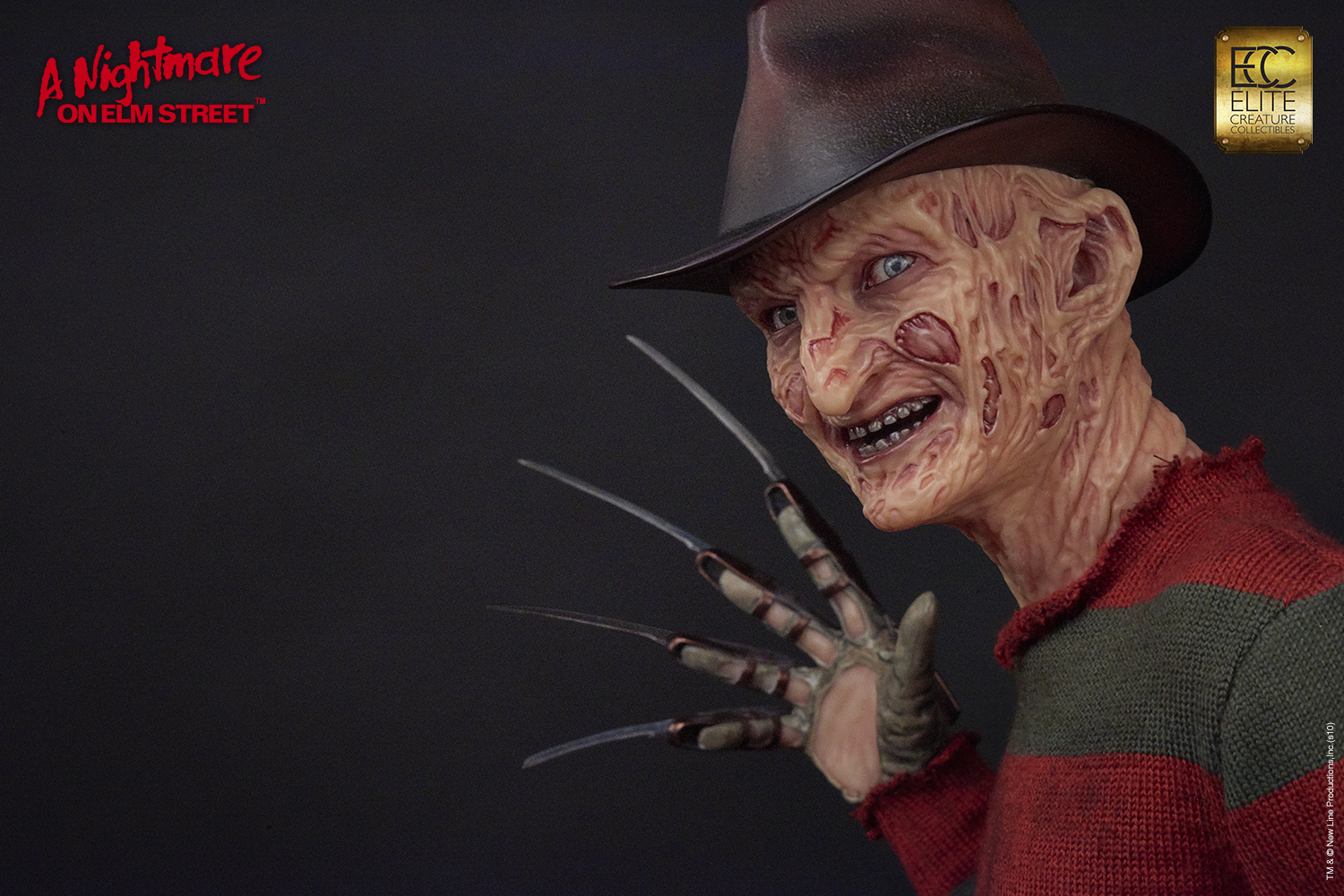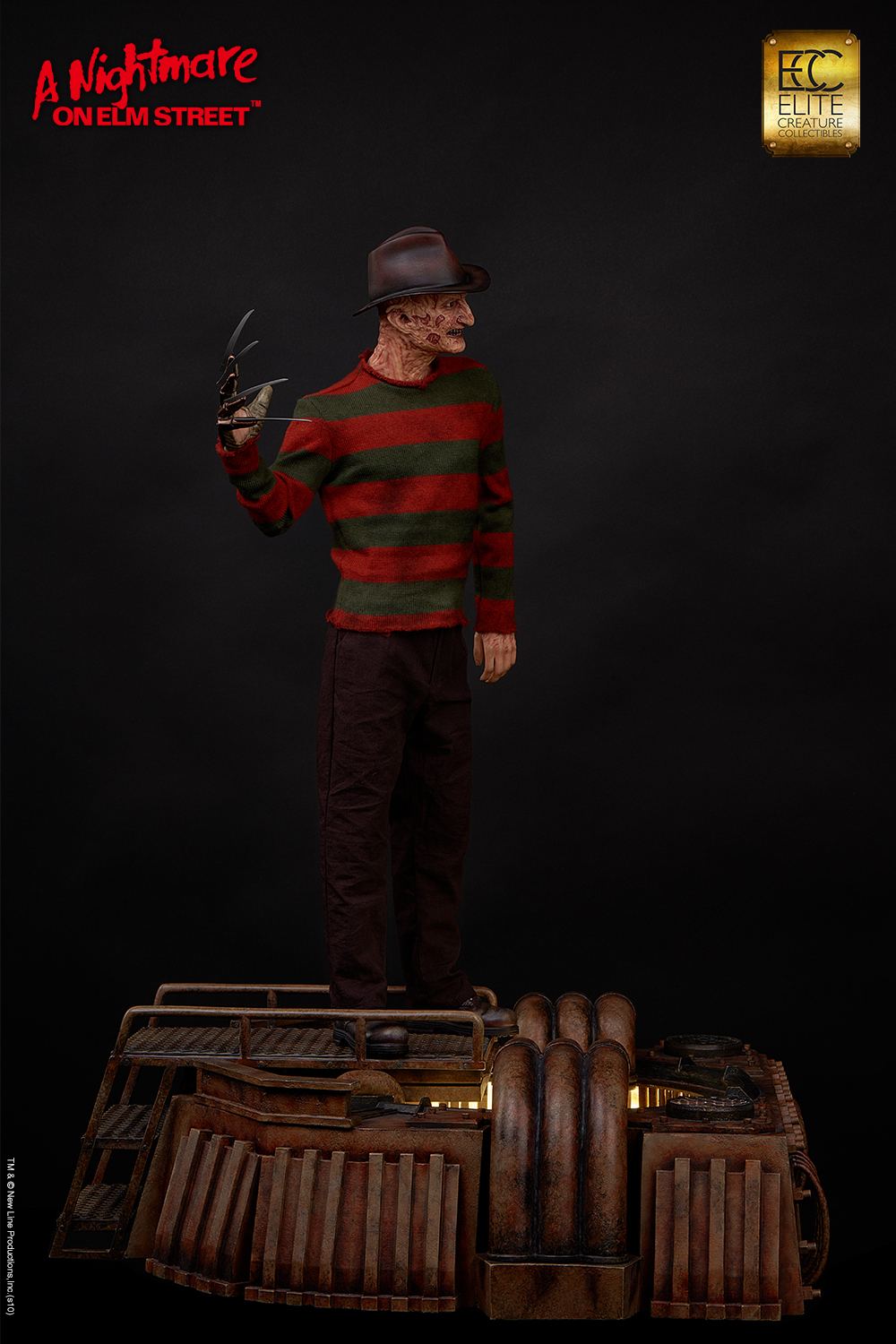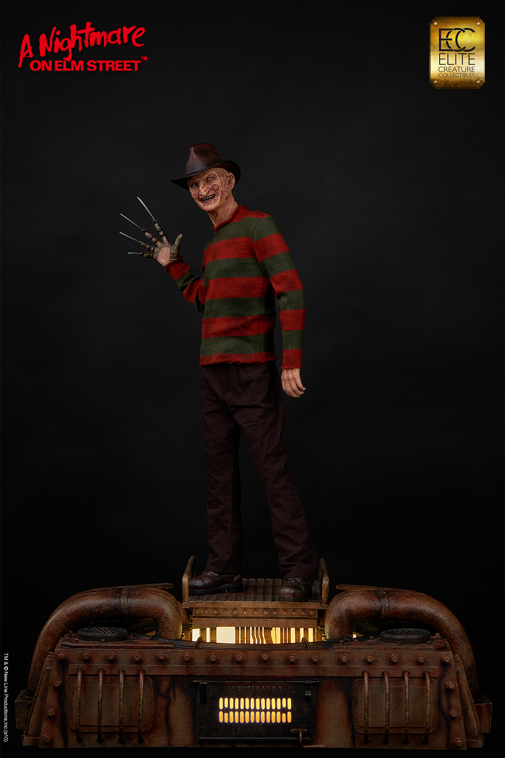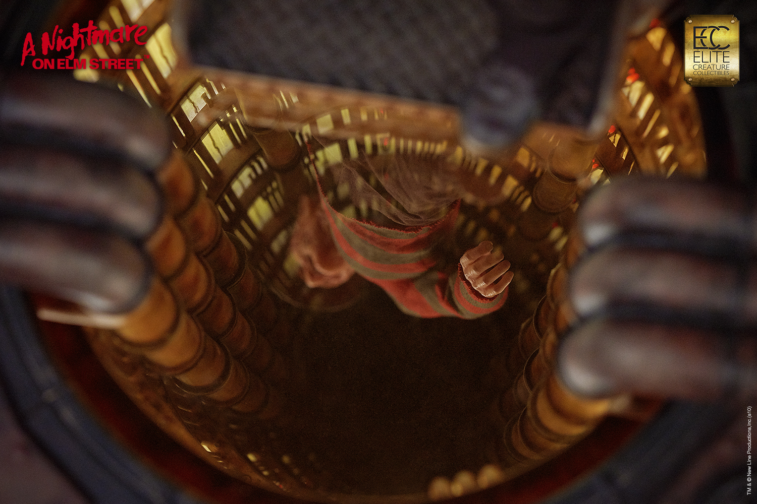 Elite Creature Collectibles is proud to introduce our museum-quality Freddy Krueger “Tribute” maquette entitled “Infinity Hell,” designed by Steve Wang. This dramatic maquette is crafted in 1:3 scale with remarkable attention to detail, standing 30 inches tall, and is the ultimate display piece for all fans of A Nightmare on Elm Street.