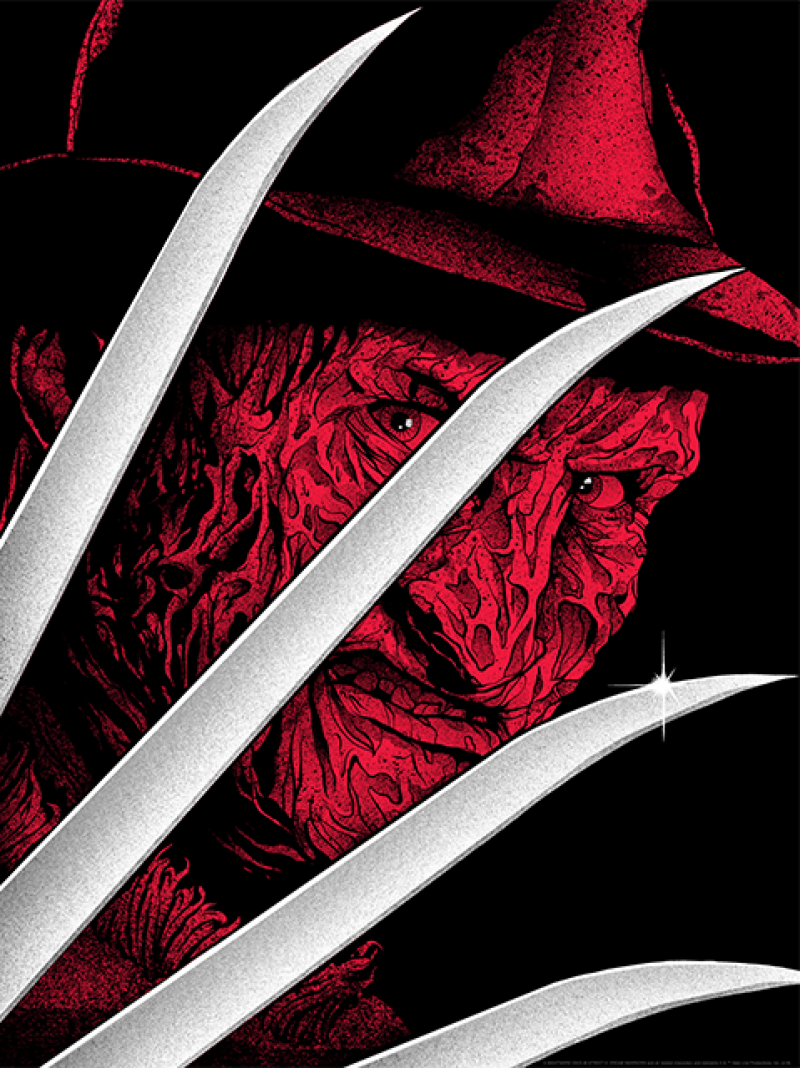 SIDESHOW IS PROUD TO PRESENT THE FREDDY KRUEGER PREMIUM ART PRINT SCREEN PRINT BY MATT RYAN TOBIN FEATURING THE LEGENDARY MOVIE SLASHER FROM A NIGHTMARE ON ELM STREET. BRANDISHING HIS RAZOR-SHARP GLOVE AND A WICKED SNARL, THIS HAUNTING PORTRAIT OF FREDDY WILL BE A DREAM COME TRUE FOR HORROR FANS.