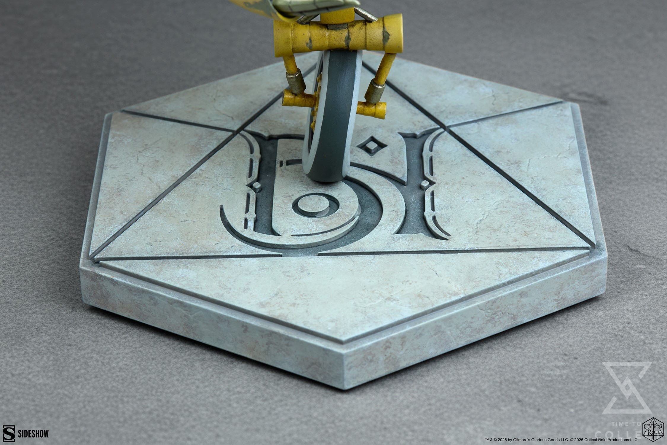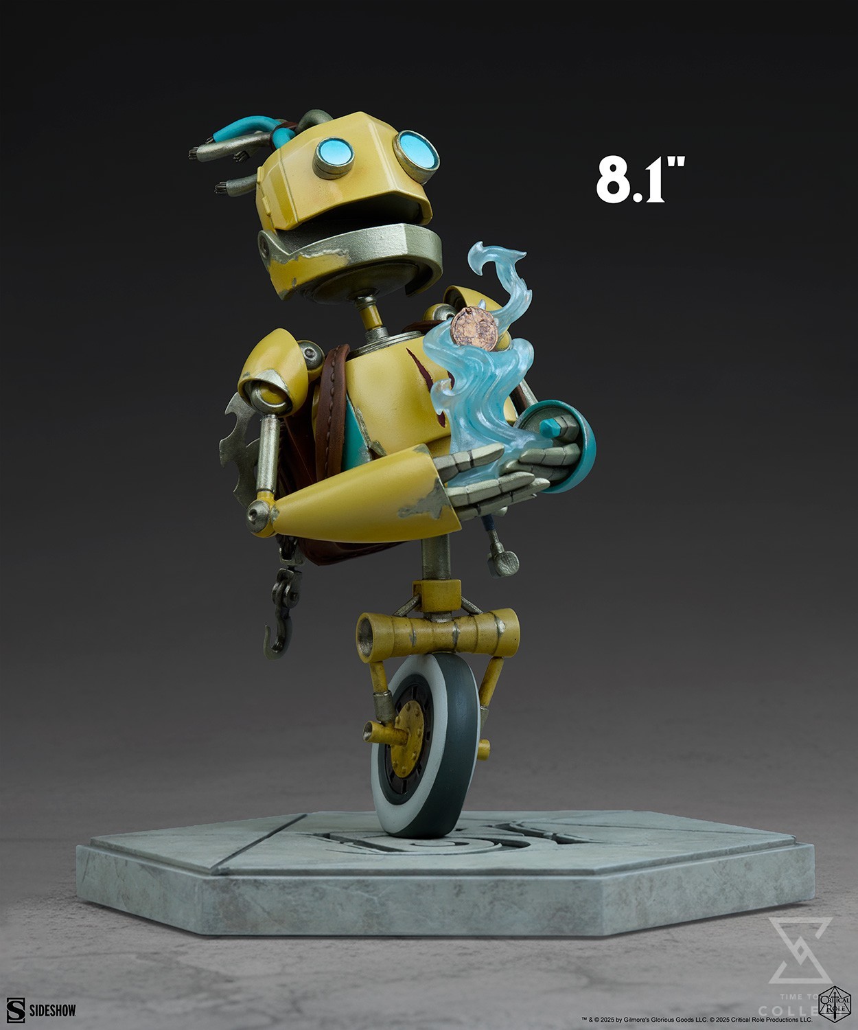 Smiley day to ya! Fresh Cut Grass, also known as FCG, brings an empathetic attitude and an optimistic resolve to the emergent band of heroes known as Bells Hells. This curious construct helps his friends with thoughtful care while seeking moral guidance from the Coin of the Changebringer. The Fresh Cut Grass – Bells Hells Statue captures their campaign-debut appearance, sporting a worn Aeormaton body that shows slight distress from past adventures. FCG balances on a central wheel, ready to roll alongside their allies into all manner of action and lend a helping hand — or a buzz saw, as the battle requires.