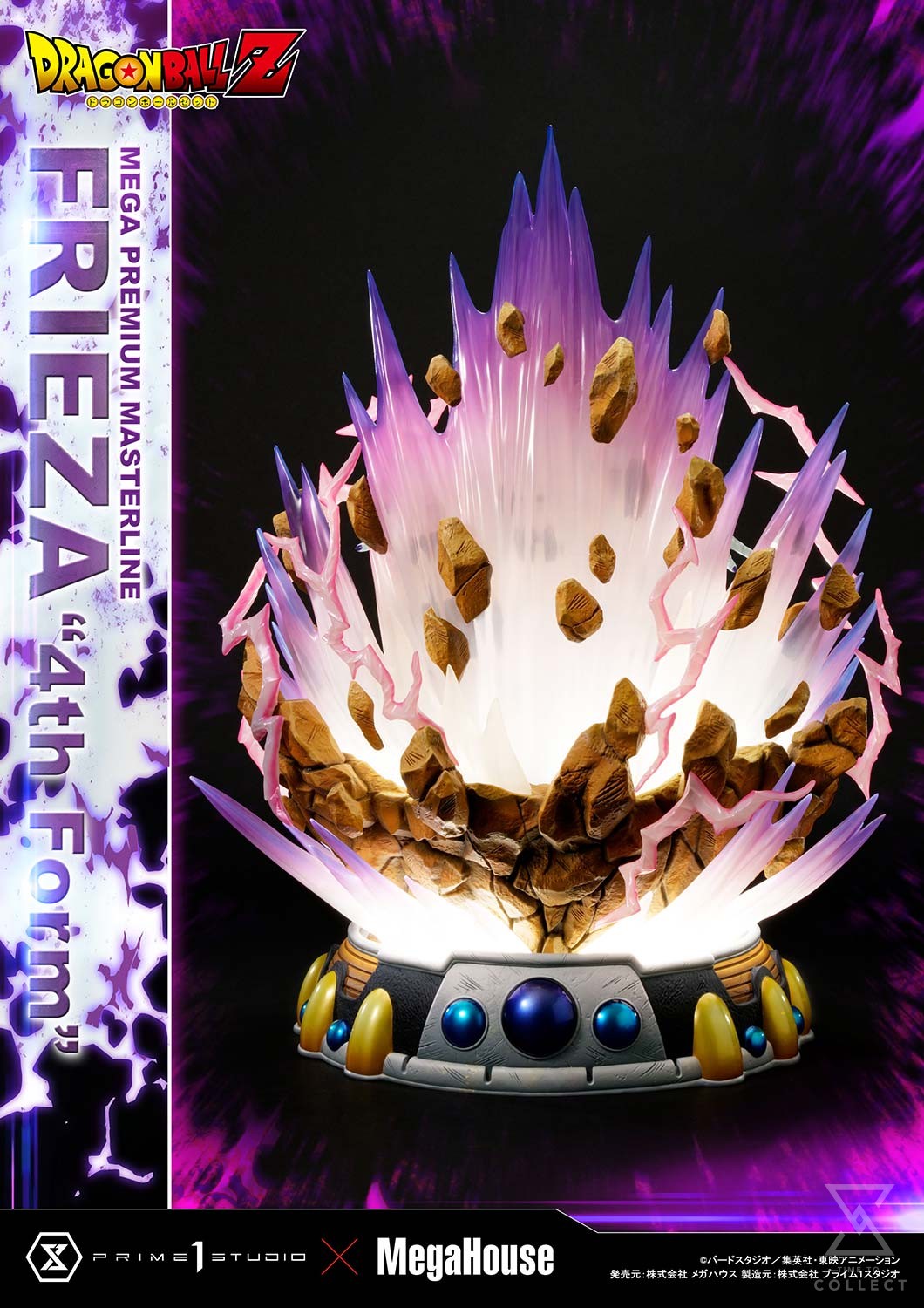 Prime 1 Studio and MegaHouse are very proud to collaborate for this long-awaited entry to our Premium Masterline Series, one of the most iconic antagonists from Dragon Ball Z: the 1:4 Scale MPMDBZ-03S Frieza 4th Form Bonus Version! Emperor of a powerful and fearsome race known as the Frost Demons, or Frieza’s Race, he possesses an insatiable desire for control and domination, seeking to conquer planets and exploit their resources. He has built quite a reputation for himself throughout the universe for his cruelty, ruthlessness, and immense power. This has led him to destroy Planet Vegeta, Goku and Vegeta’s home planet, over the fear of the Saiyan race’s growing power and their potential to become a threat to his rule. The Namek Saga is where Frieza first appears in Dragon Ball Z and became one of the most beloved arcs among fans as it features highly praised character development and battle scenes. The statue portrays Frieza in his final form, reached during his confrontation with Goku on Planet Namek. One foot in front of the other, arms outstretched, fans have come to know this pose as the Frieza Stance – the ground around him comes asunder as he gathers his ki to show his power level – giving off a purple aura lit up by LED. And when you order the Bonus version from our official store or any authorized distributor, you will receive a Dragon Ball Z logo stand to display at the base of your statue. Complete your collection with this MPMDBZ-03S Frieza 4th Form Bonus Version statue and pre-order now! A must-have for DBZ fans everywhere!