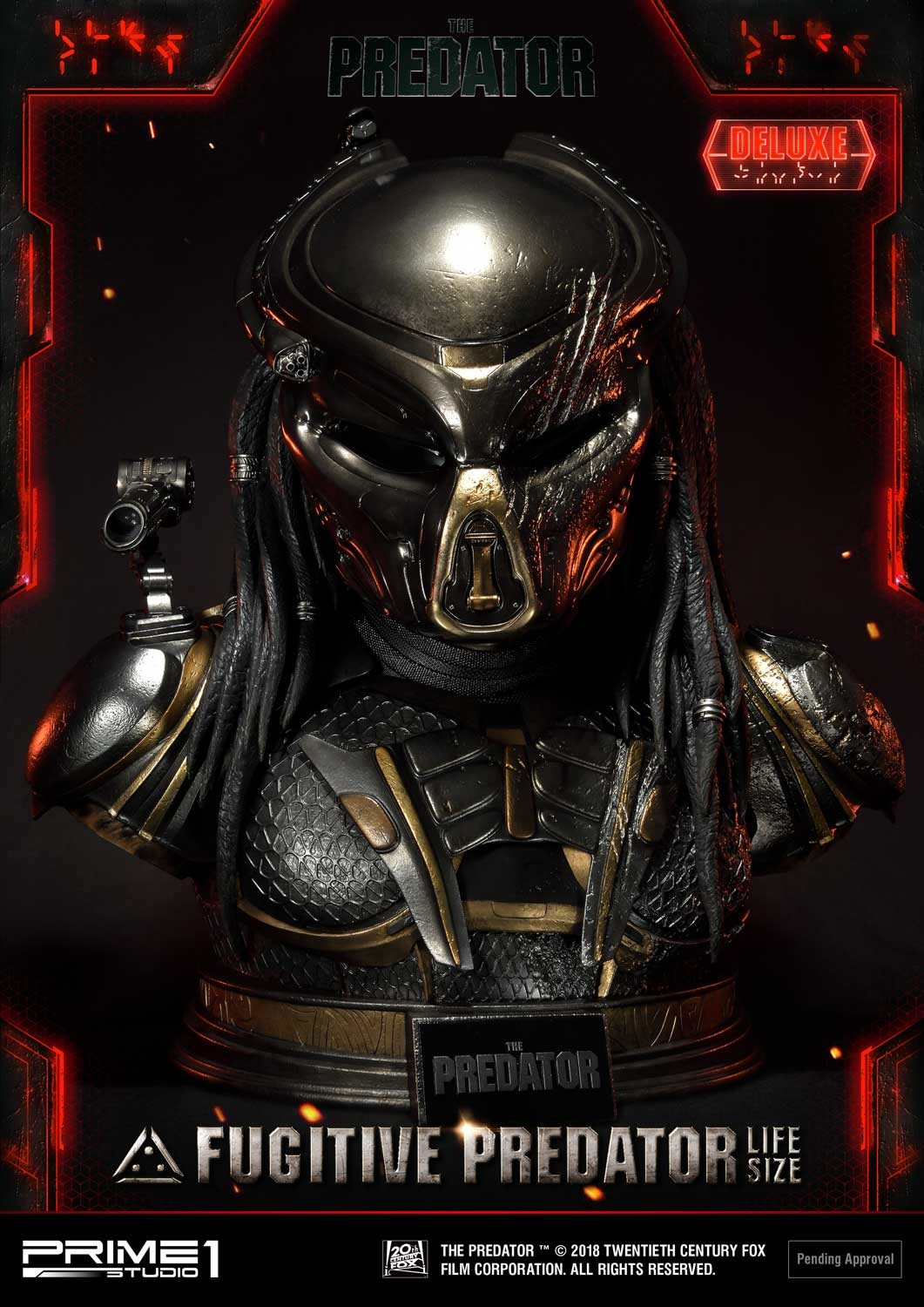 Prime 1 Studio is proud to present Life Size LSTPR-01DX: Fugitive Predator Deluxe version from The Predator (2018 Film). The Predator is an upcoming 2018 science fiction film that will be directed by Shane Black. It will be a sequel to the 1987 film Predator. It is the fourth installment in the Predator film series and set to be released on September 14, 2018. The Fugitive Predator bust was made using Props 3D digital scan files as you will see in the film, making this the most film accurate of Fugitive Predator you will ever find. This Life Scale bust will surely make a show-stopping to your collection while displaying with or without the Predator Helmet. This is a must-have for all Predator fans!