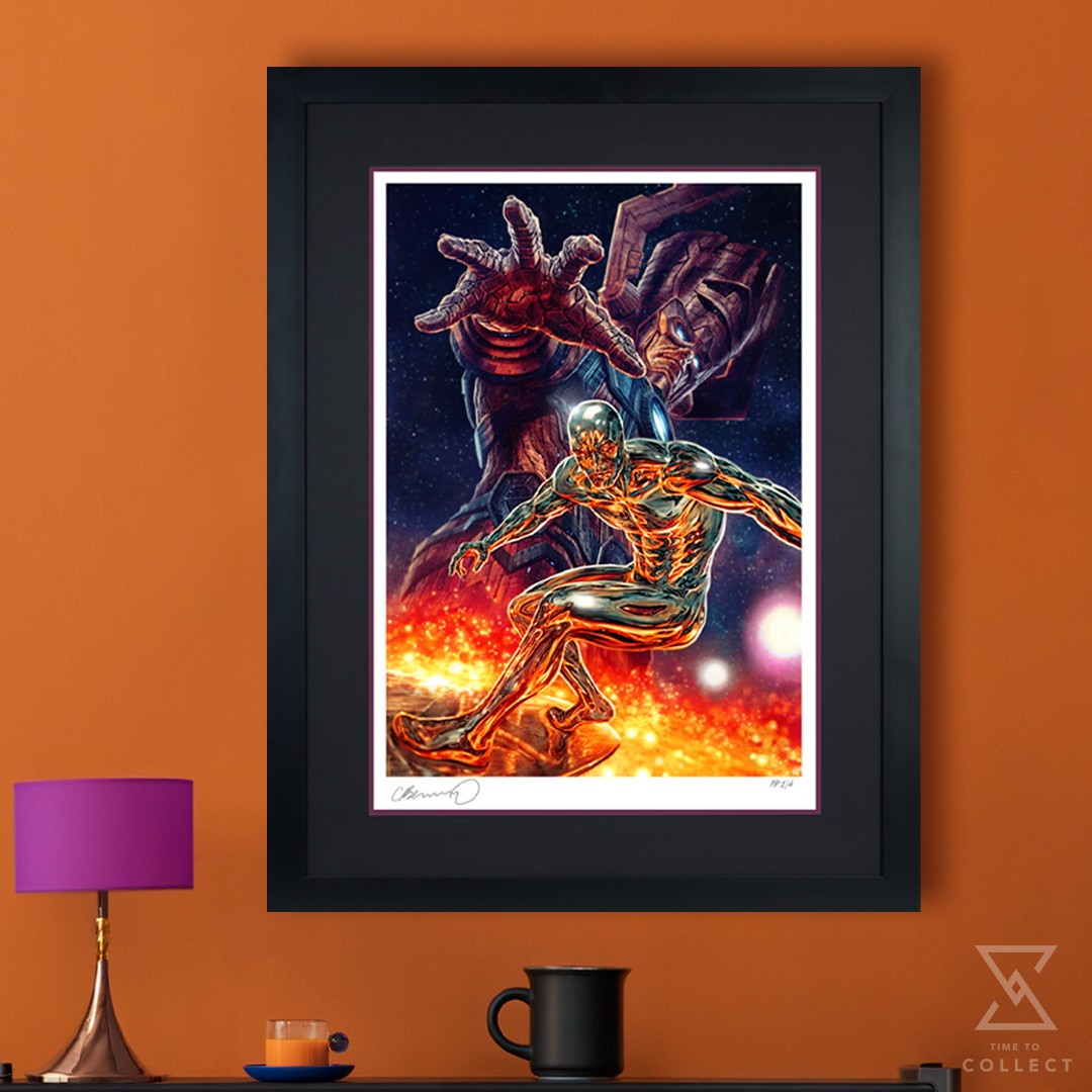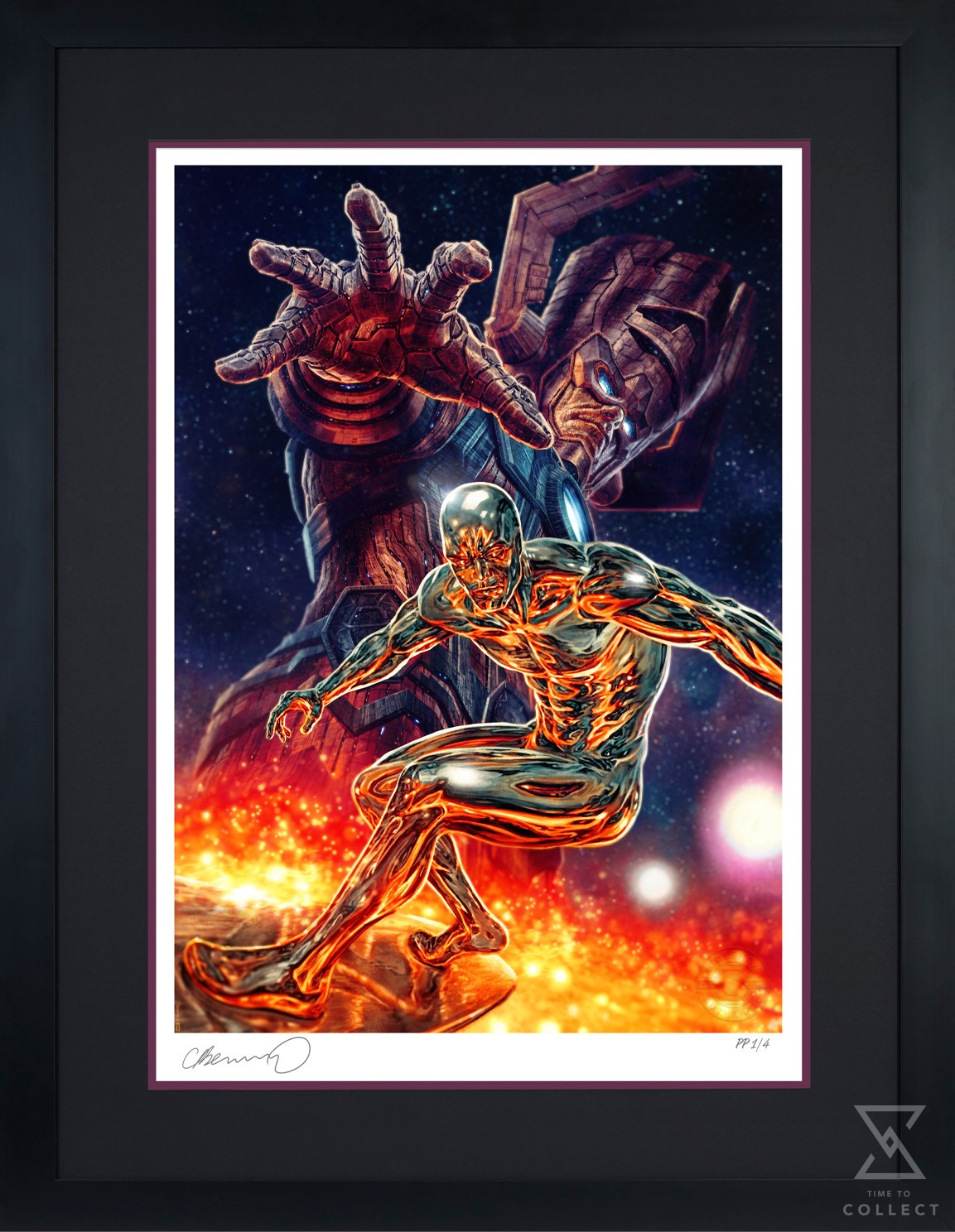 Originally created as a variant cover for Fantastic Four #1 (2025), written by Ryan North for Marvel Comics, this Fantastic Four art is now available to fans as an unframed giclée print or in a custom framed presentation. Each Galactus and the Silver Surfer Fine Art Print features an authorized, automated artist signature and an embossed Sideshow Seal of Authenticity as part of the limited edition of 250 pieces.