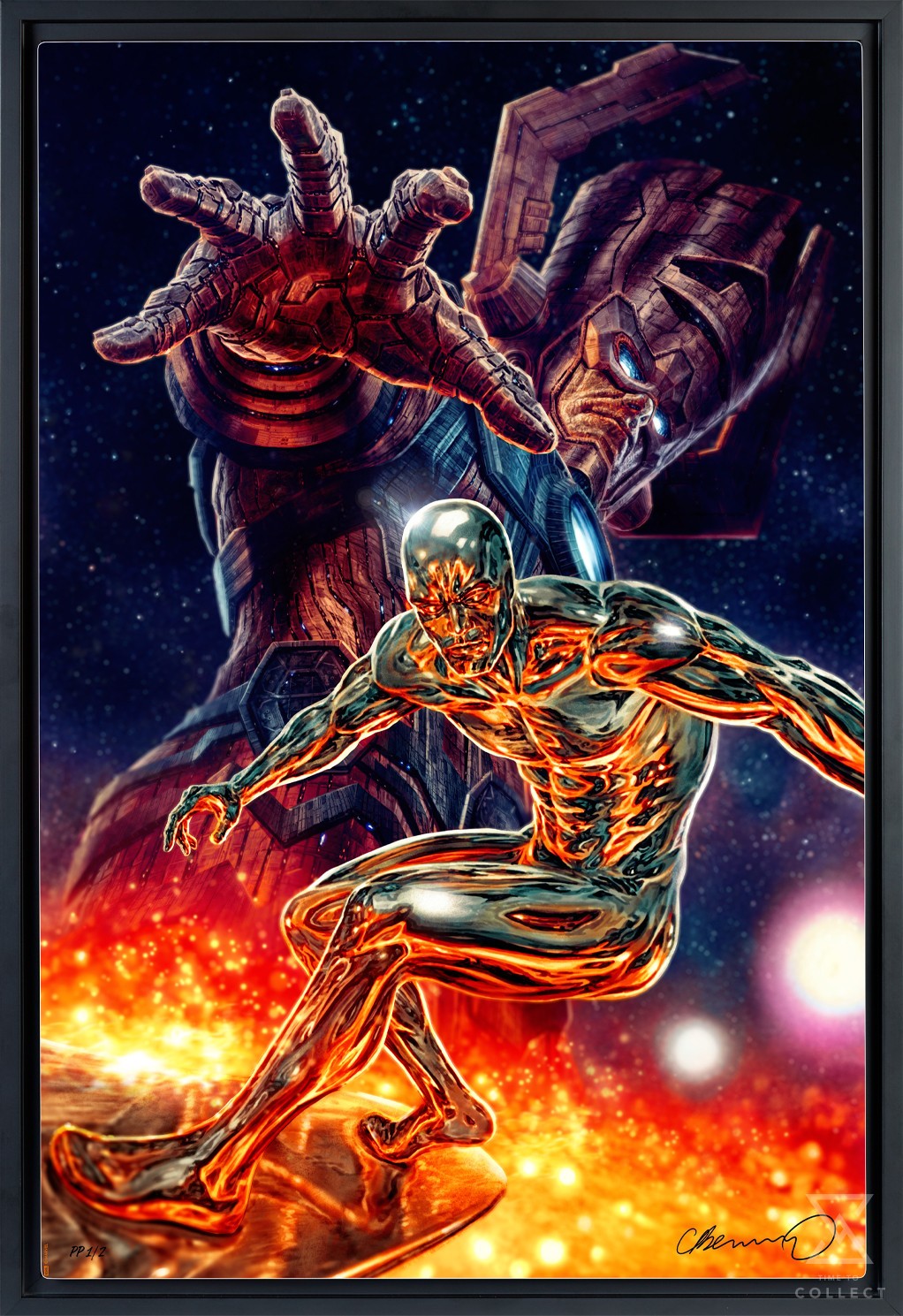 Take hold of your destiny! Bring home the Galactus and the Silver Surfer Fine Art Print by Lee Bermejo today!
