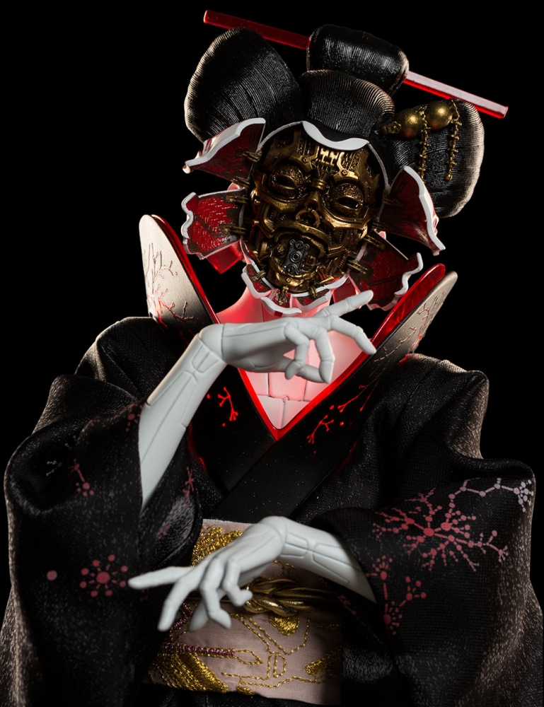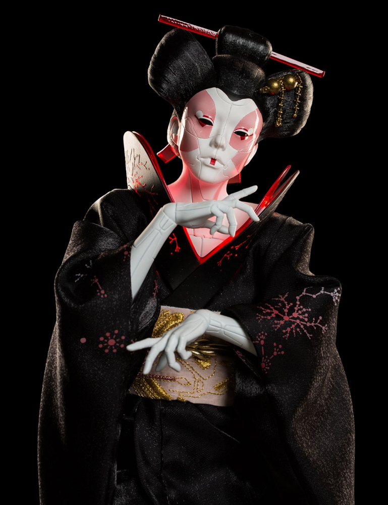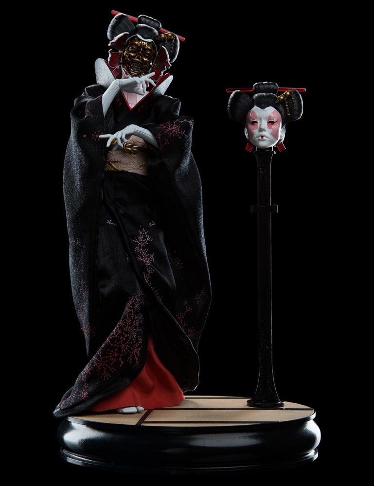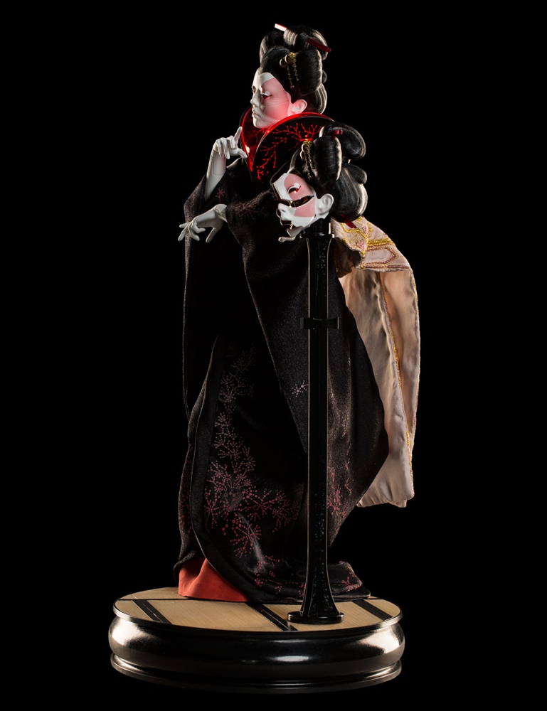 A pivotal action sequence called for a series of beautiful but deadly Geisha. With costume designers Kurt and Bart, the Workshop helped design distinctive make-up, hair and kimono ensembles, imbuing each character with a unique look to be recreated on the Workshop floor. Featuring sculptural wigs, silicone limbs, and animatronic masks with moving jaws, these Geisha pushed Weta Workshop into new creative territory, expanding the scope of what could be achieved through physical effects. Take home a piece of that incredible workmanship with Weta Workshop’s gorgeous Geisha collectible. Only 500 have been made.