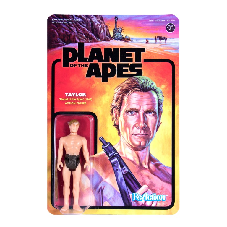 The 3.75″ scale retro style figures are based on the iconic film series where intelligent Apes have overtaken Earth after the near extinction of mankind. Each figure comes packaged on a classic style card back, featuring artwork by Ed Repka.