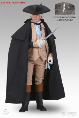 Sideshow Collectibles American Revolutionary War Fife and Drum Collection Series Legendary Icons US Colonial Army Major General George Washington Soldier figure that is one of the most highly detailed historically accurate 12 inch size 1/6th scale fully jointed action figure soldiers that has ever been made.He is mint in the box he came in and has never been opened or used in any way what so ever.He comes with US Colonial Army Officers Sword and scabbard,Tricorn Hat,Caped Cloak,Printed Map and a working extending Telescope and all the weapons,gear and equipment shown on the box.You will not be disappointed in the quality of this great looking historical soldier figure.