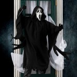 The mixed media Ghost Face Statue features sculpted details and tailored fabric elements to give the horror collectible an added element of dynamism. The figure’s mask, pants, and boots are all sculpted while the black fabric cloak, hood, gloves, and sleeves are all tailored to recreate the costume’s deathly appearance. Wiring in the hood and sleeves allows for posing the material to give Ghost Face a sense of movement. Additionally, the white curtains of the busted window background are fabric with wire support for posing as the killer makes his surprise attack on unsuspecting victims.