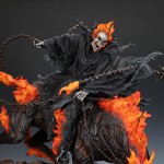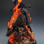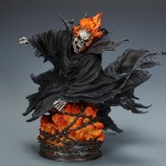 A centerpiece for every collector. Hellfire blazing, black hooves galloping, a flaming skull behind the cloaked figure, chained flail in hand. This art statue collectible features Ghost Rider in action as he executes his demonic duties, hunting down souls and sending them straight to hell on the back of his blazing hell beast.