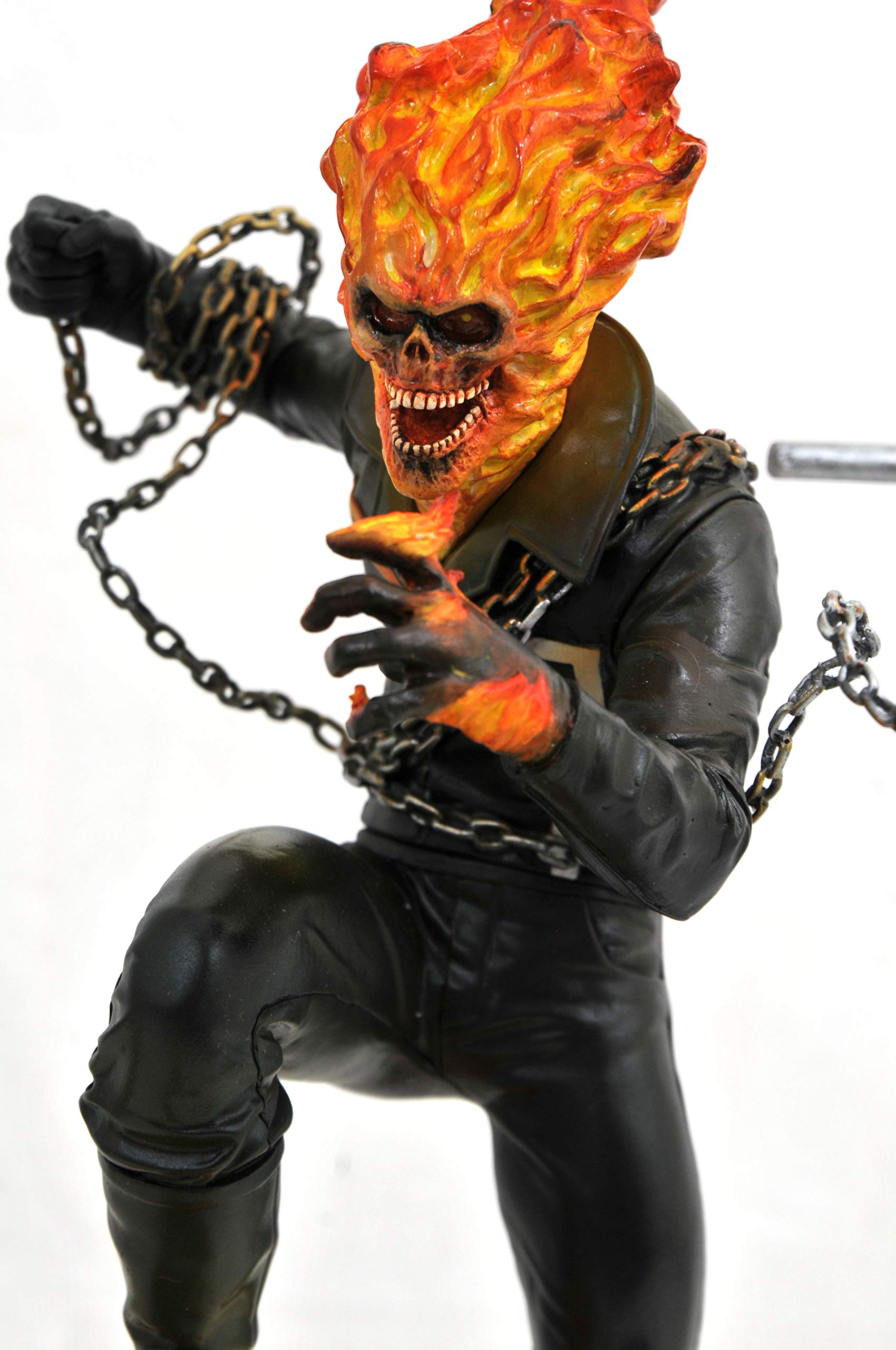 A Diamond Select Toys release! Gaze into his penance stare! The original Spirit of Vengeance pulls off stunt worthy of the daredevil he is in this dynamic new statue form the Marvel Milestones collection! Seen as he swings a chain from the handlebars of his motorcycle, this approximately 15-inch resin statue is limited to only 1,000 numbered pieces and comes packaged with a certificate of authenticity in a full-color box. Designed by Nelson X. Asencio, sculpted by Mat Brouillard.