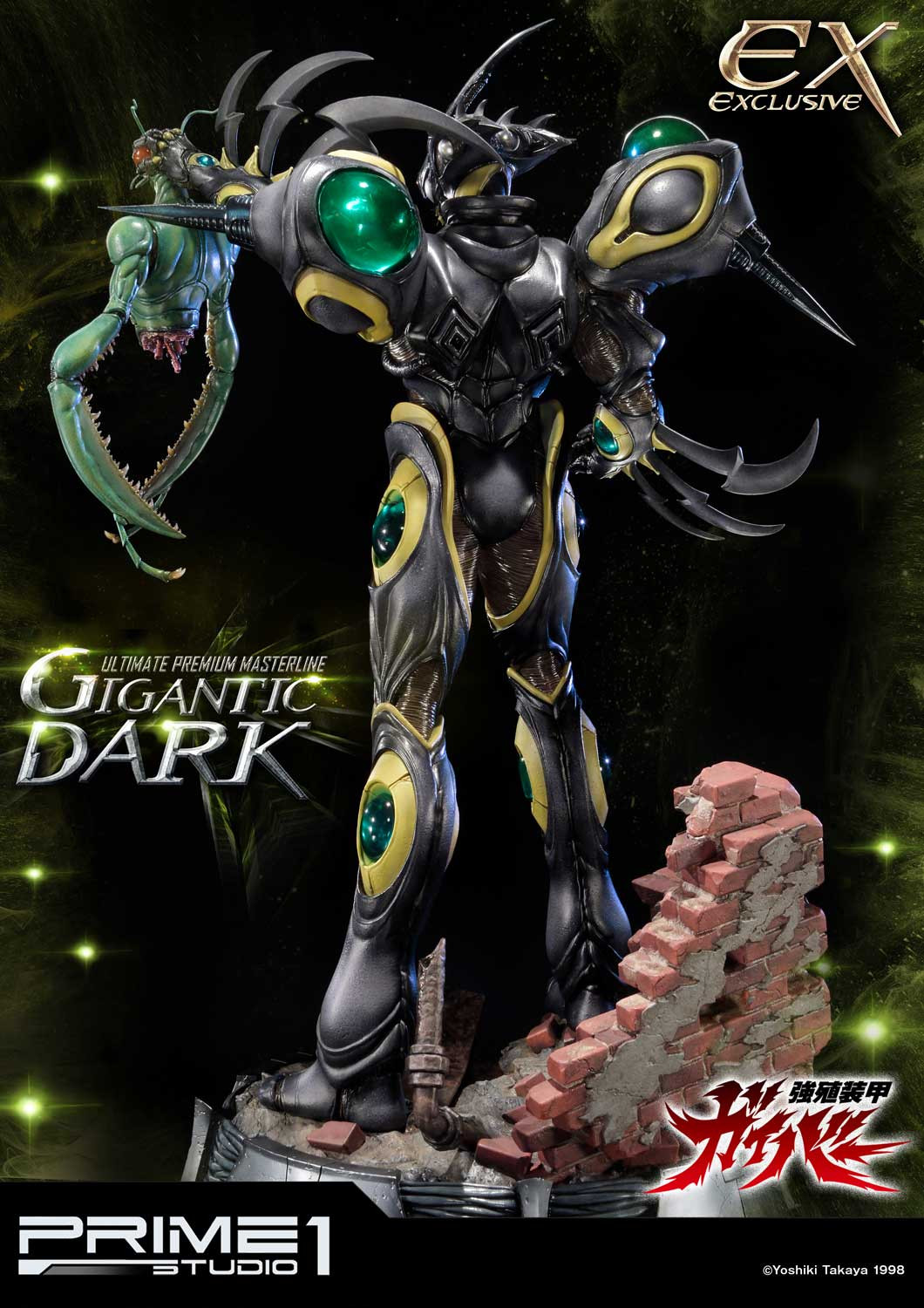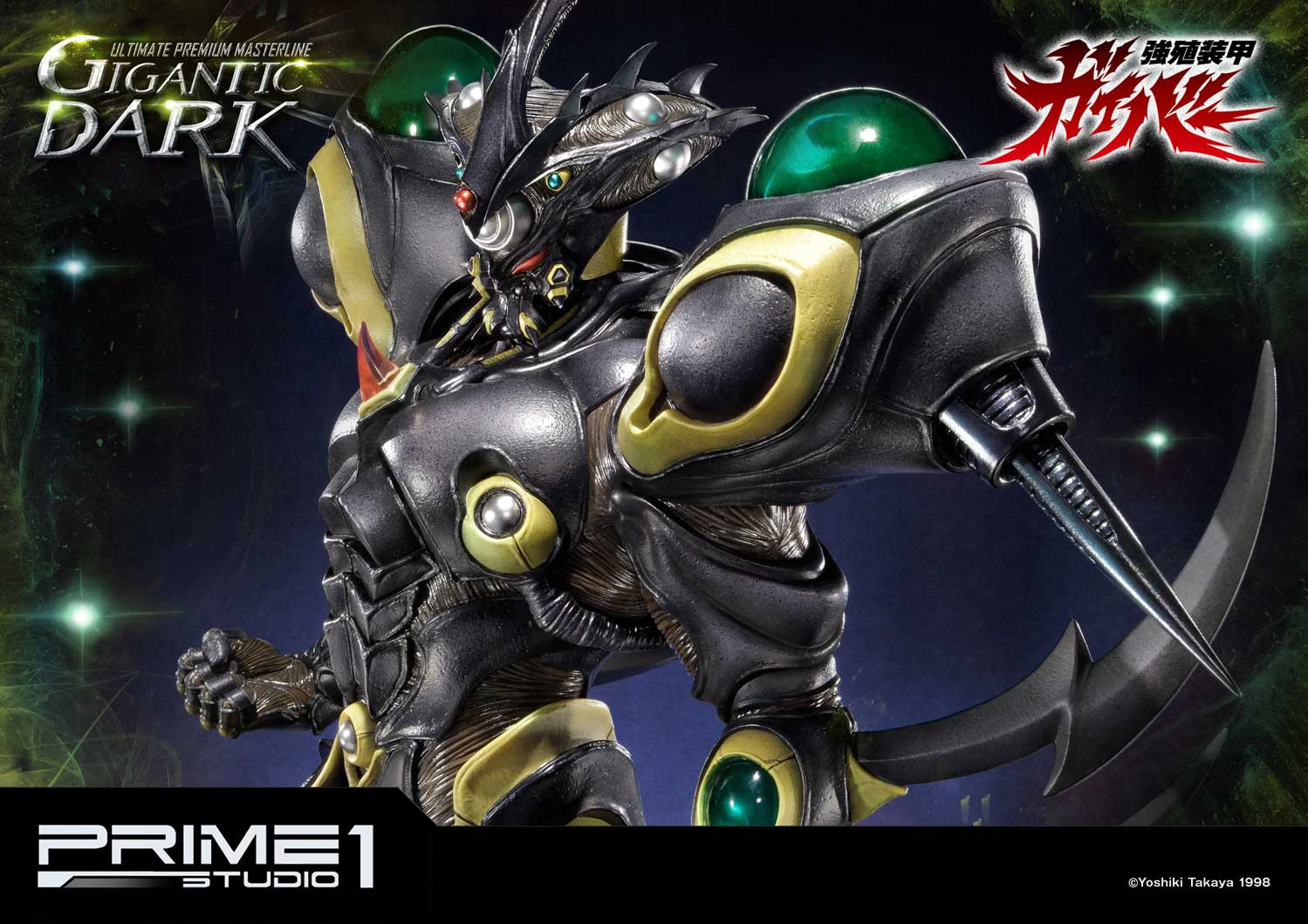 Prime 1 Studio is proud to present Ultimate Premium Masterline Guyver – 03: Gigantic Dark from Guyver: The bioboosted Armor. The Guyver Gigantic is a greatly enhanced version of the standard Guyver Bio-Armor. What makes this version of the Guyver so special, aside from it is tremendous destructive power, is that it was created through the force of human will. Sho Fukamachi is responsible for bringing the Gigantic into being and has since been using it to undermine Cronos new world order. Althought Sho is the one who fashioned the Gigantic with his own will, he is not the only person who can use it. Agito Makishima (Guyver III Unit) can also equip the Gigantic. Equipping the armor requires superior strength of will, and since Guyvers I and III are no longer allies, they have each attempted to take the Gigantic from the other.