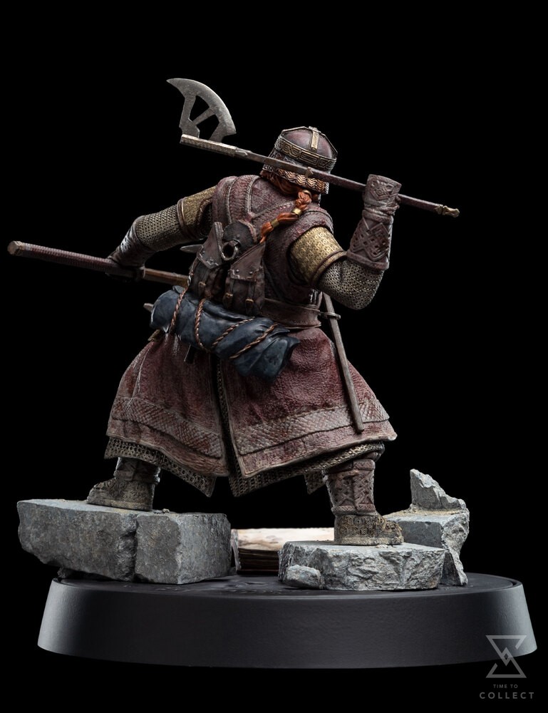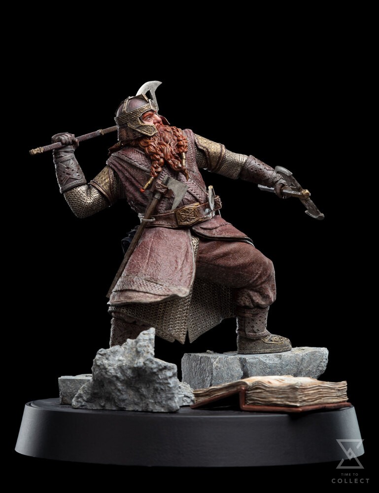 Charging into the thick of battle, Gimli cuts his enemies down to size with an inexhaustible tenacity for which the Dwarven race is known. Learning then, that one of his own kin was slain by an infestation of Orcs, sends the hardened warrior into a rage, transforming the Dwarf into a deadly whirlwind of blade, beard, and fury.