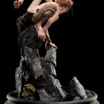 Featuring hand-placed natural hair, translucent skin, and cloth of real leather, this is the first time Weta Workshop has represented Gollum in 1:3 scale. Near clear, water-effect resin lies the creature’s ill-fated Ring, undisturbed on the naked stone, caught in a moment in time.