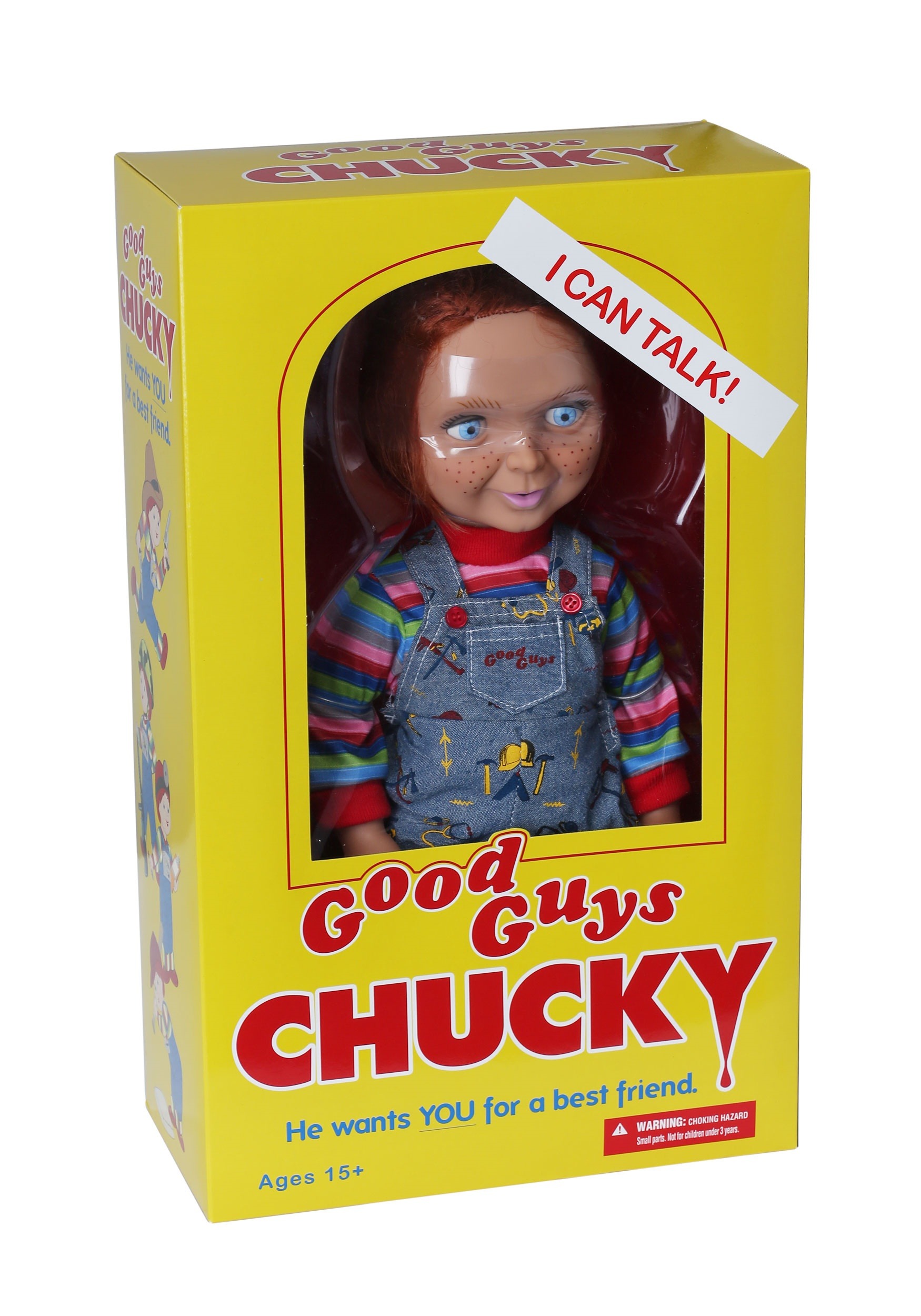 Packaged in a sturdy, collector friendly die-cut window box inspired by the packaging seen in the films, the Good Guys 15-inch Chucky doll is sure to become a focal point of any Chucky collection.