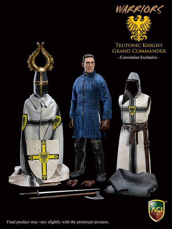 – Extra fake head, with chain mail coif (made of plastic fabric) fixed on the head, for wearing helmet