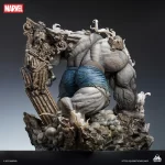 This 1/4 scale Hulk statue is inspired by Marvel Comics, The Incredible Hulk #621 “God Smash (Part One)” illustrated by Paul Pelletier. This statue stands 67cm tall and captures the Hulk Mid-smash. Smoke rushes off the Incredible Hulk as he grasps the debris around him. Flying debris surrounds the Hulks body, in front of his feet lies the helmet of Loki, the God of Mischief.