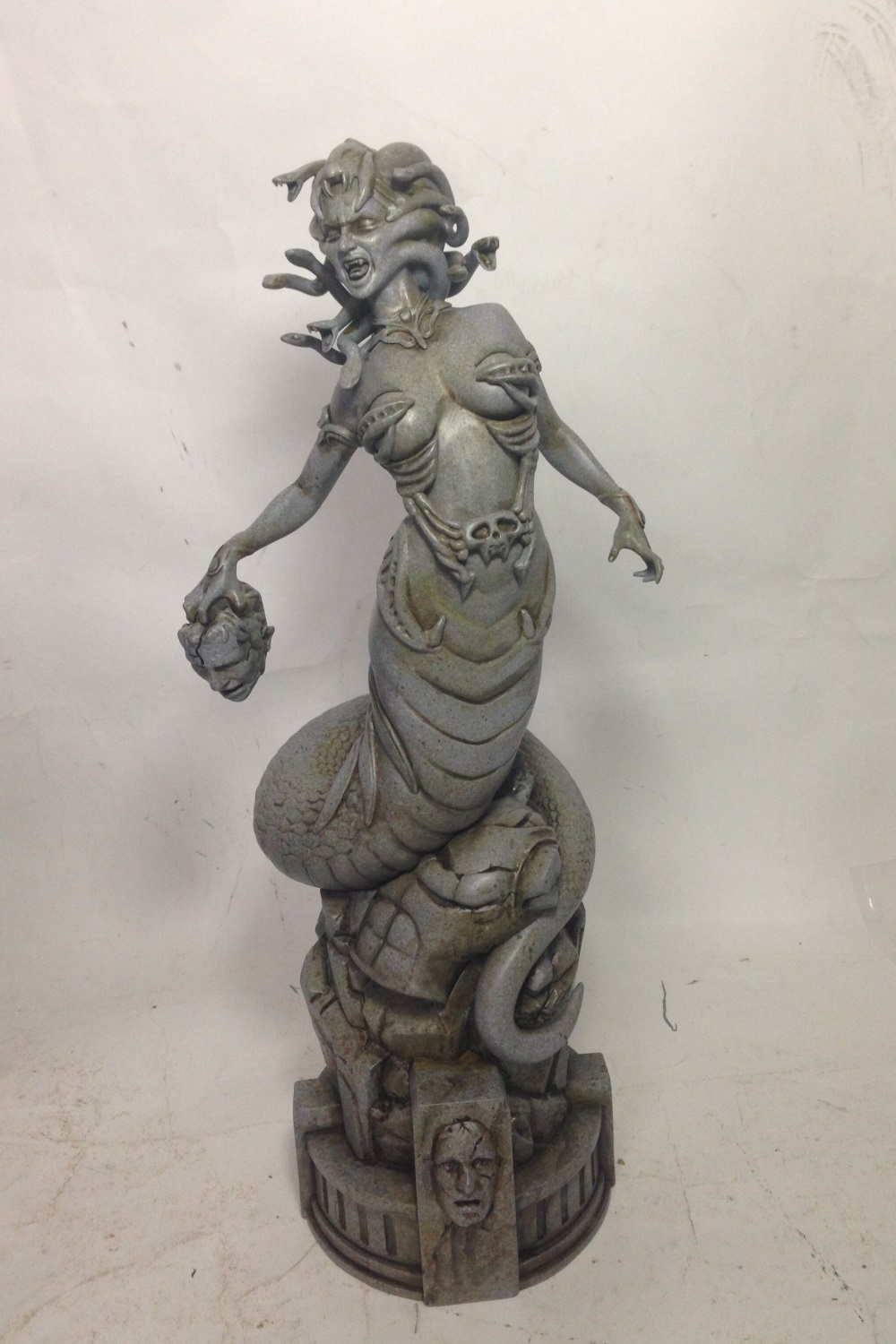 Greek myth collection is known for its goddess figure but this is our first ever that looks like a creature. Very famously known as Medusa. Through darkened ruins and statues she stirs, crushing ancient bones beneath her serpentine body as she hunts for her prey. Part woman, part snake and what had once been long flowing hair is now a nest of angry vipers that hiss and spit as she quietly slithers among the headless statues of mortal fools who dared seek their fortune; but only found their death. Forever cursed by the goddess Athena; Medusa was once a beautiful woman, what remains now is a terrible visage that none dare look upon, lest they turn to stone… and now, she’s found you! Look not into her eyes and avoid her hateful gaze… for if you do not, you will be forever added among her headless garden of statues, a victim of her fury!