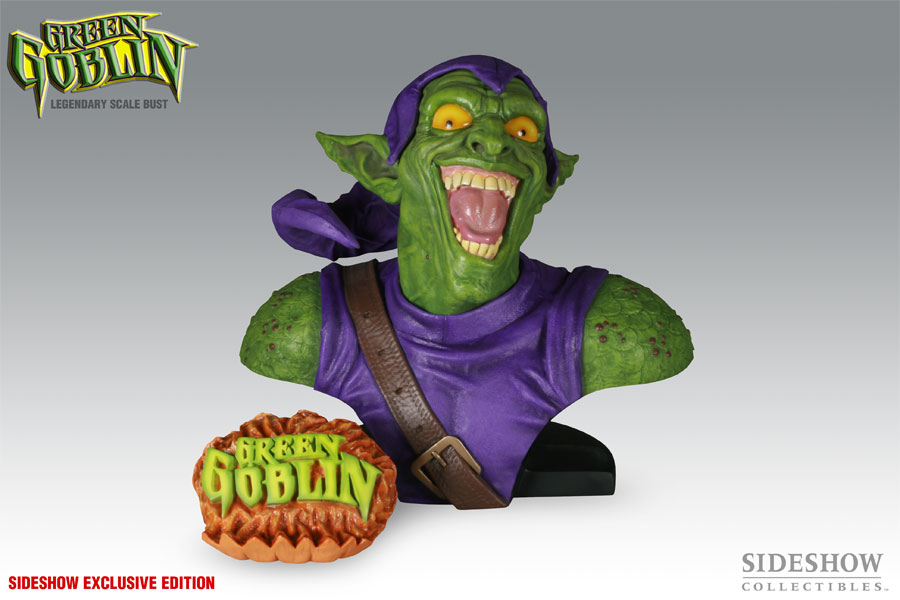 Sideshow Collectibles and Marvel Comics proudly present the latest addition to the Marvel Legendary Scale Bust series – the Green Goblin. This outstanding bust meets the standard of excellence that is the hallmark of a Sideshow sculpture. Hand-finished and hand-painted and cast in the highest quality polystone, the Green Goblin Legendary Scale bust is a perfect addition to any Spiderman or Marvel collection!