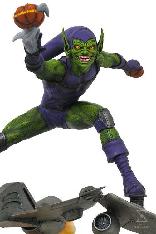 Spidey’s ultimate foe! In this sensational, action-packed Spider-Man Marvel Comics Premier Green Goblin Resin Statue, Spidey’s formidable foe stands on his Goblin Glider above an unbelievable base and throws a smoking pumpkin bomb right at you! In approximately 1:6 scale and and-sculpted by the incomparable Clayburn Moore based on a design by the talented Yuri Tming, this resin Green Goblin is a super-detailed limited edition of 3,000 pieces that comes with a certificate of authenticity in a full-color box. He belongs on your desk or shelf!