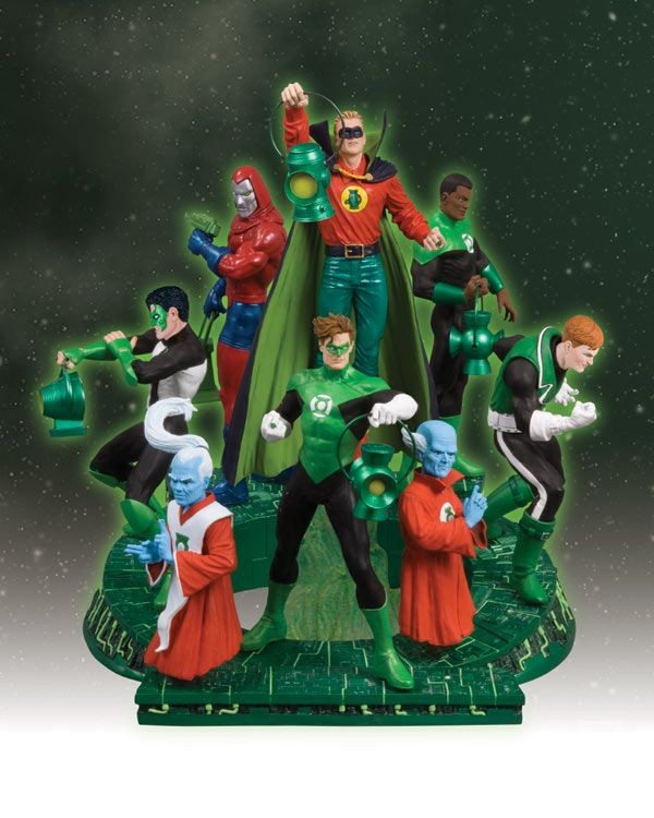 This multi-part statue is a must-have for Green Lantern fans. Green Lanterns from different eras appear together on a Lantern-shaped base, along with their predecessors, the Manhunters, as well as the Guardians of the Universe. The statue is made up of four separate pieces (sold in three parts), which form a single statue. Displays well as a single statue.
