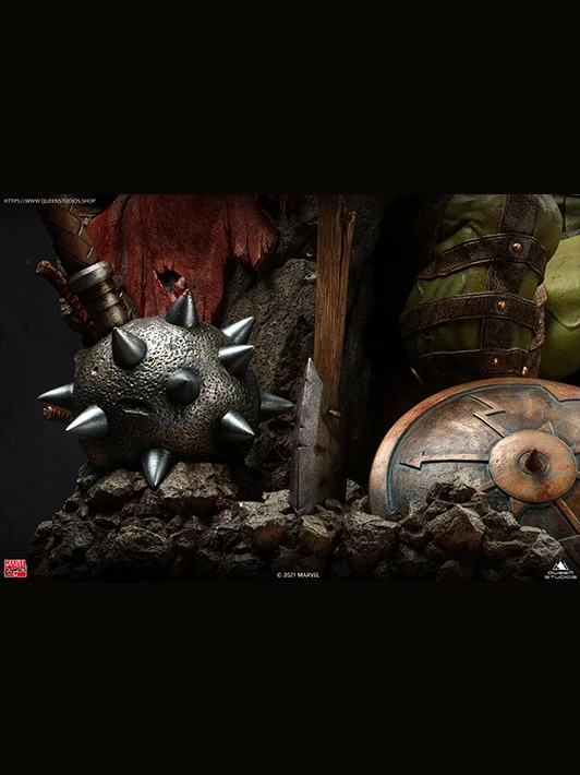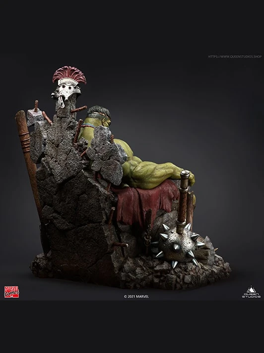 The “Green Scar” Hulk is a tragic character with origins in Marvel Comics Planet Hulk. After the Green Scar Hulk witnessed the death of his family and friends, he wages war to enact revenge against the suspected culprits. The Queen Studios 1/4 statue is based on the Green Scar Hulk from the cover of World War Hulk (2007) #4, which many recognise as the iconic character that inspired Gladiator Hulk from Thor Ragnarok.