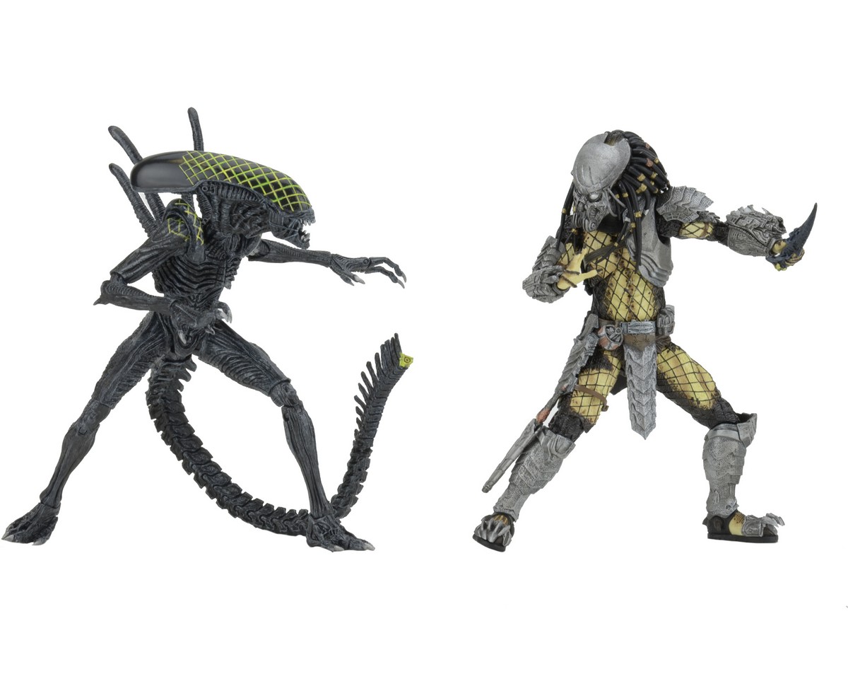 This special edition action figure 2-pack is based on the Alien vs. Predator movie, which pits the deadly Xenomorphs against the galaxy’s most feared hunters! It includes Battle-Damaged Celtic Predator and Battle-Damaged Grid Alien figures with special deco and accessories for re-enacting their final, fatal battle! Standing over 8” tall, Battle-Damaged Celtic Predator features a new damaged mask and blades, as well as a stripped-down armor setup. Battle-Damaged Grid Alien stands over 9” tall and features an extendable inner mouth, as well as a damaged bendable tail with severed tail tip that can be used as a hand-held weapon by Celtic. The set also includes an actual net with drawstring enclosure to ensnare your Xenomorphs! Both figures feature over 30 points of articulation and decoration that is exclusive to this set and not available anywhere else.
