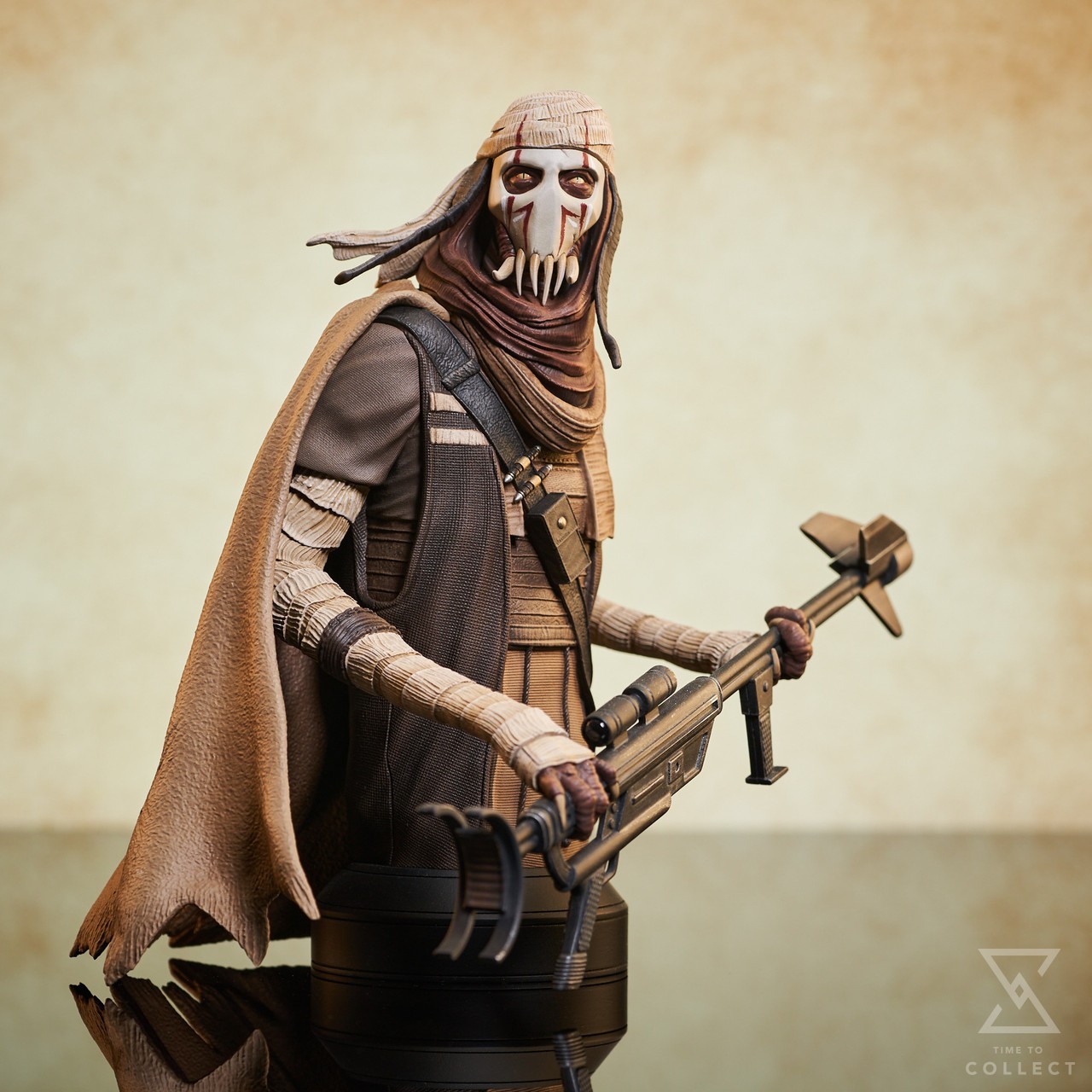 A Gentle Giant LTD release! Before he was General Grievous, he was Grievous the warlord! Hand-picked by the Separatists to lead their robot army, the Kaleesh male called Qymaen jai Sheelal was turned into a cyborg, but this bust captures him as he was before! Standing approximately 8 inches tall, this 1/6 scale mini-bust features detailed sculpting and paint applications, and is limited to only 600 pieces.