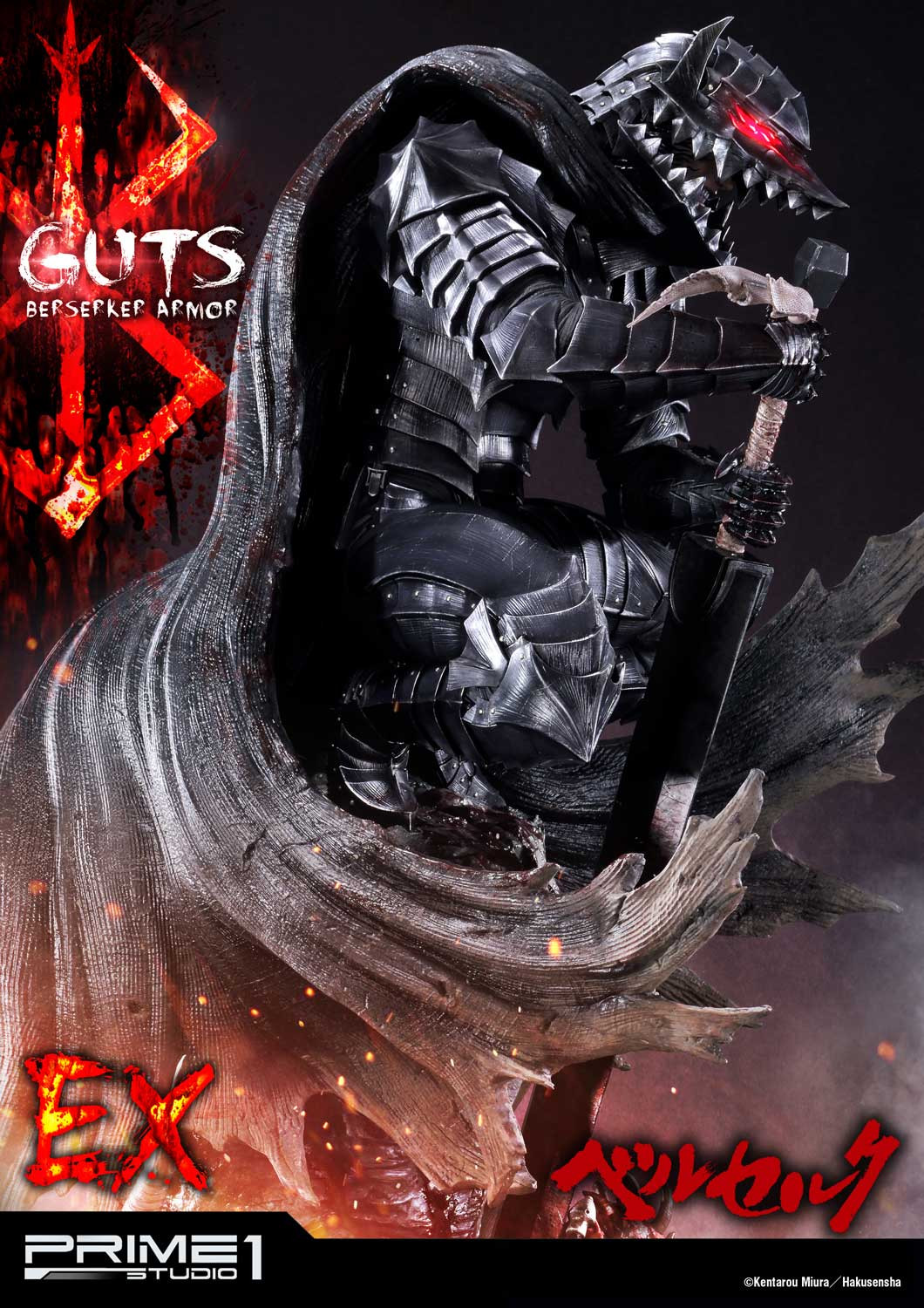 Prime 1 Studio is proud to present UPMBR-04: Guts, Berserker Armor from Berserk (Manga). Guts also known as The Black Swordsman is the main protagonist of Berserk. The Berserker Armor is a suit of highly durable armor forged by dwarves. Wearers of the armor are appropriately named Berserkers. This armor imbued with a violent od purposed for drawing out and manifesting its wearer’s negative emotions. It is eventually entrusted to Guts after Flora’s spirit tree mansion is invaded by apostles of Griffith’s reborn Band of the Hawk. This Ultimate Premium Masterline Berserk series brings to life the popular Japanese dark fantasy comics/manga and crafted with attention to details and true to the original design of the character. The Berserker Armor statue stands at an impressive 37 inches tall with his Dragonslayer sword on the shoulder. This is the ultimate piece for all Berserk fans.