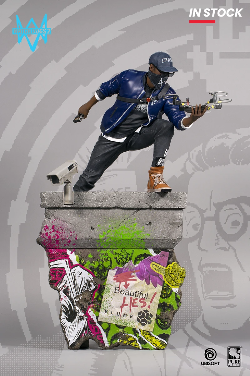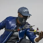 HACKTIVIST MARCUS comes with interchangeable gadgets in his left hand, that you can switch to either his cell phone or his drone.