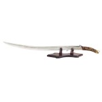 This authentically detailed collectible is an officially licensed reproduction of the sword wielded by Arwen in The Lord of the Rings movie trilogy. United Cutlery, industry leader in fine movie reproductions, has meticulously recreated the actual prop sword using only the finest grade materials and craftsmanship. Close attention to detail was a top priority. This beautiful sword features a wooden handle adorned with Elven vine designs and equipped with a solid metal pommel. The sharp-edged blade is crafted of tempered 420 stainless steel and inscribed with runes. This item includes a wooden display stand with silkscreened design and a certificate of authenticity.