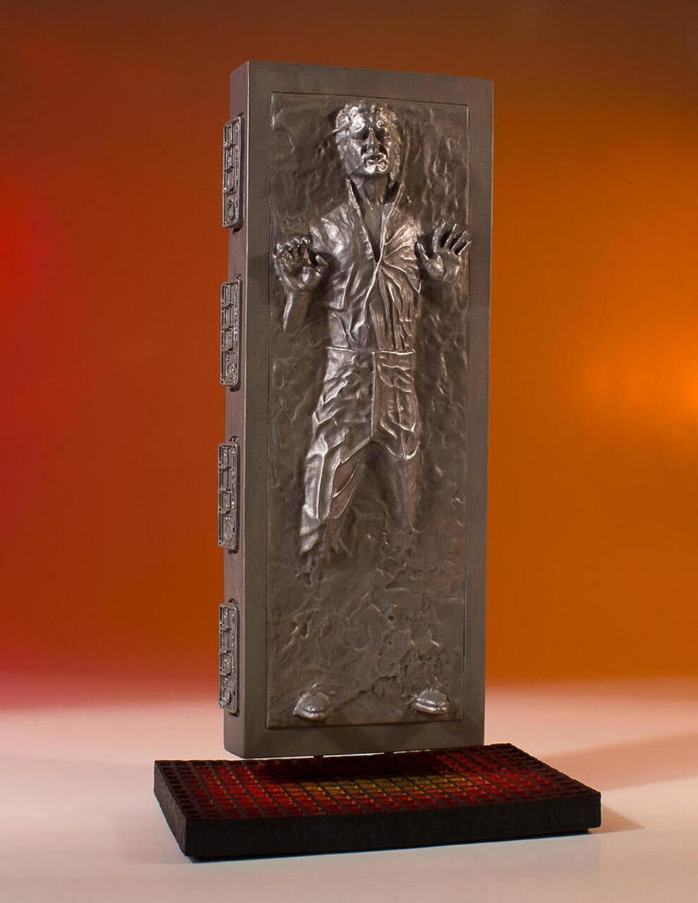 Carbon-freezing is an industrial process that encases highly pressurized gasses inside of solidified carbonite. In Cloud City Darth Vader sets a trap for young Luke Skywalker to be frozen and tests the process on his prisoner Han Solo. The smuggler turned hero survived the freezing process, in perfect hibernation, and Vader hands captain Solo over to the bounty hunter Boba Fett to take back to the gangster Jabba The Hutt.