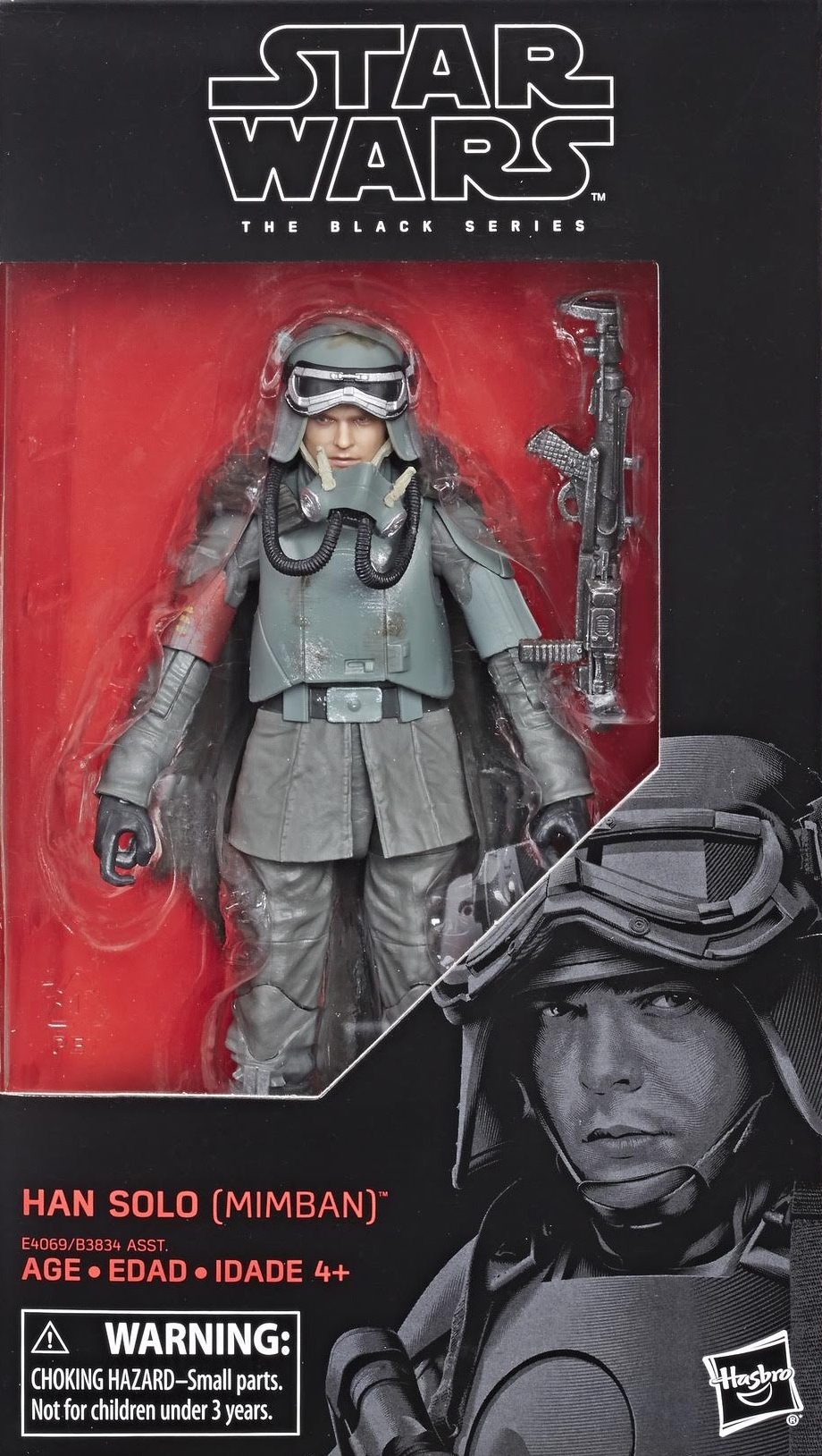 Han Solo dressed in Mimban mudtrooper outfit as featured in The Solo movie. Includes battle rifle and removable helmet.