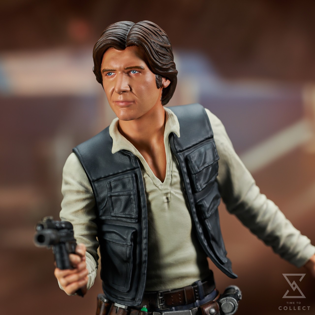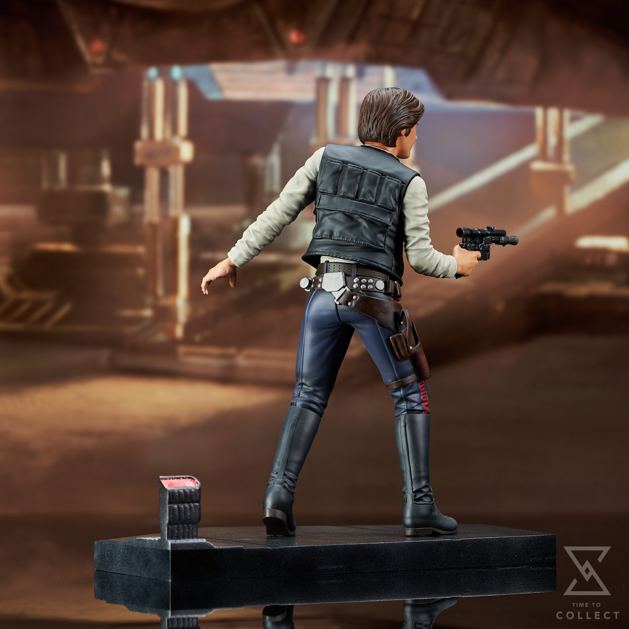 A Gentle Giant LTD release! Never tell him the odds! Han Solo draws his blaster and prepares for a fight in this all-new 1/7 scale statue, part of Gentle Giant LTDs Premier Collection! Wearing his iconic vest and striding across a metallic landing platform, the Corellian smuggler stands approximately 10 inches tall and features detailed sculpting and paint applications. This statue is limited to only 3,000 pieces, and comes packaged with a certificate of authenticity in a full-color box.