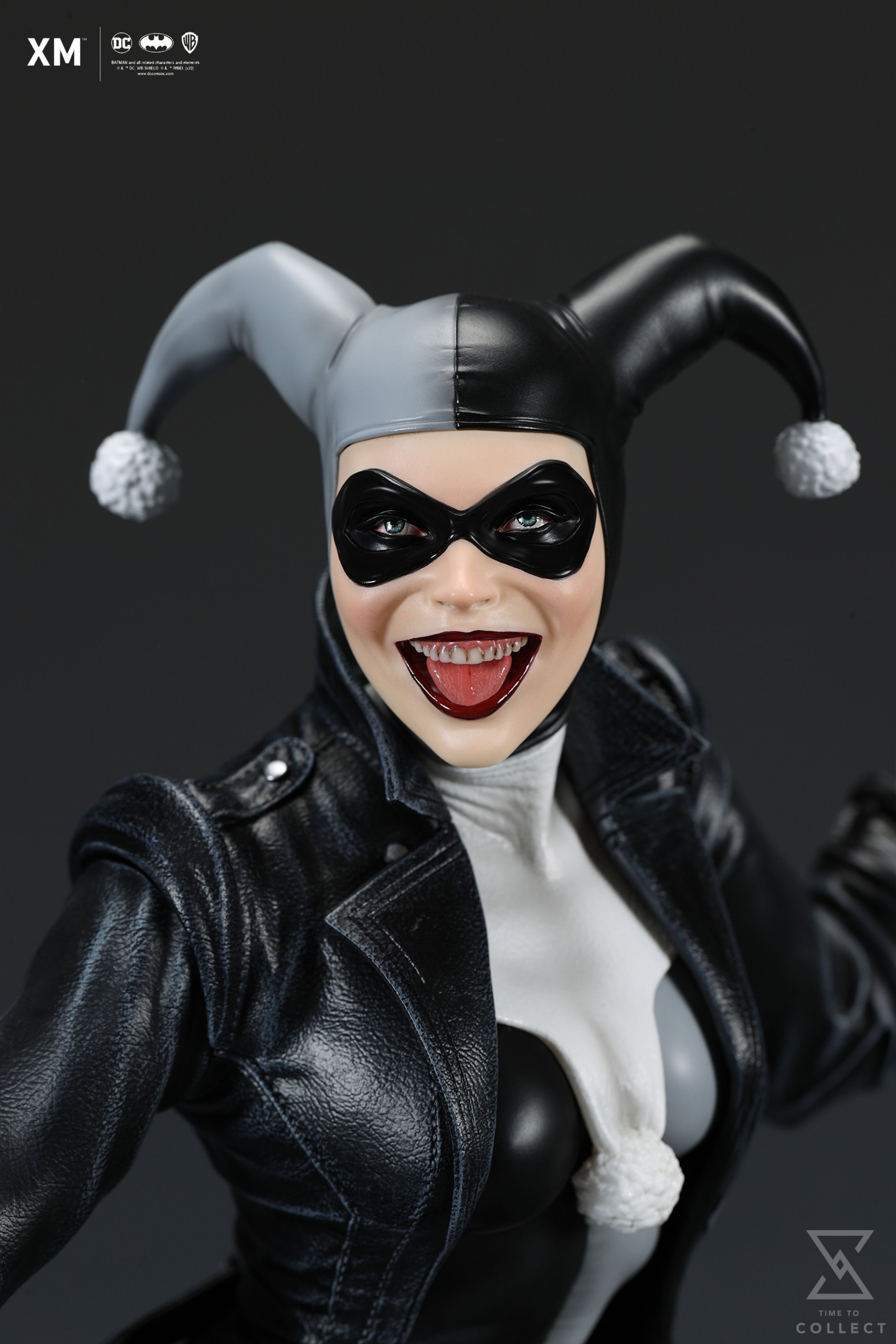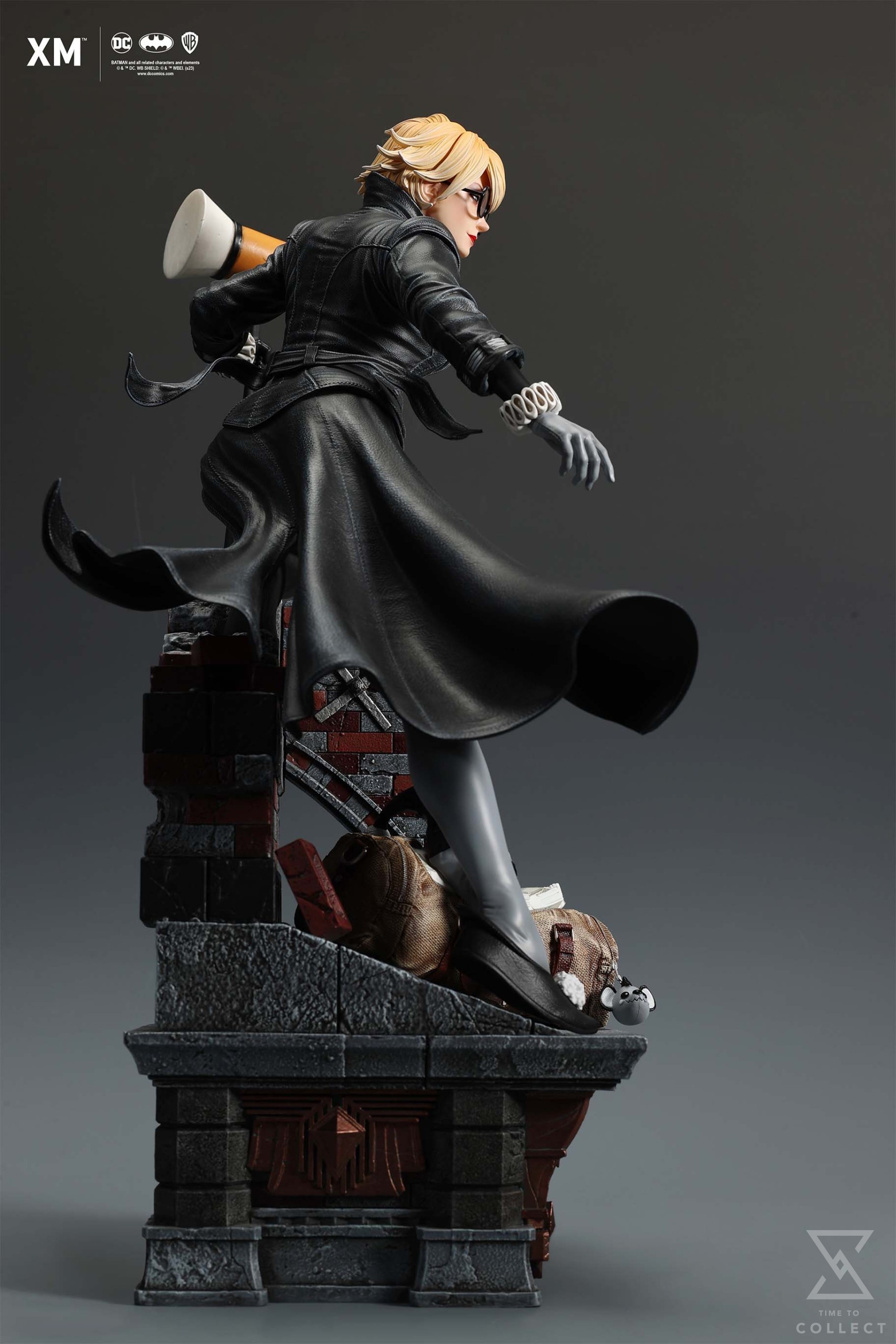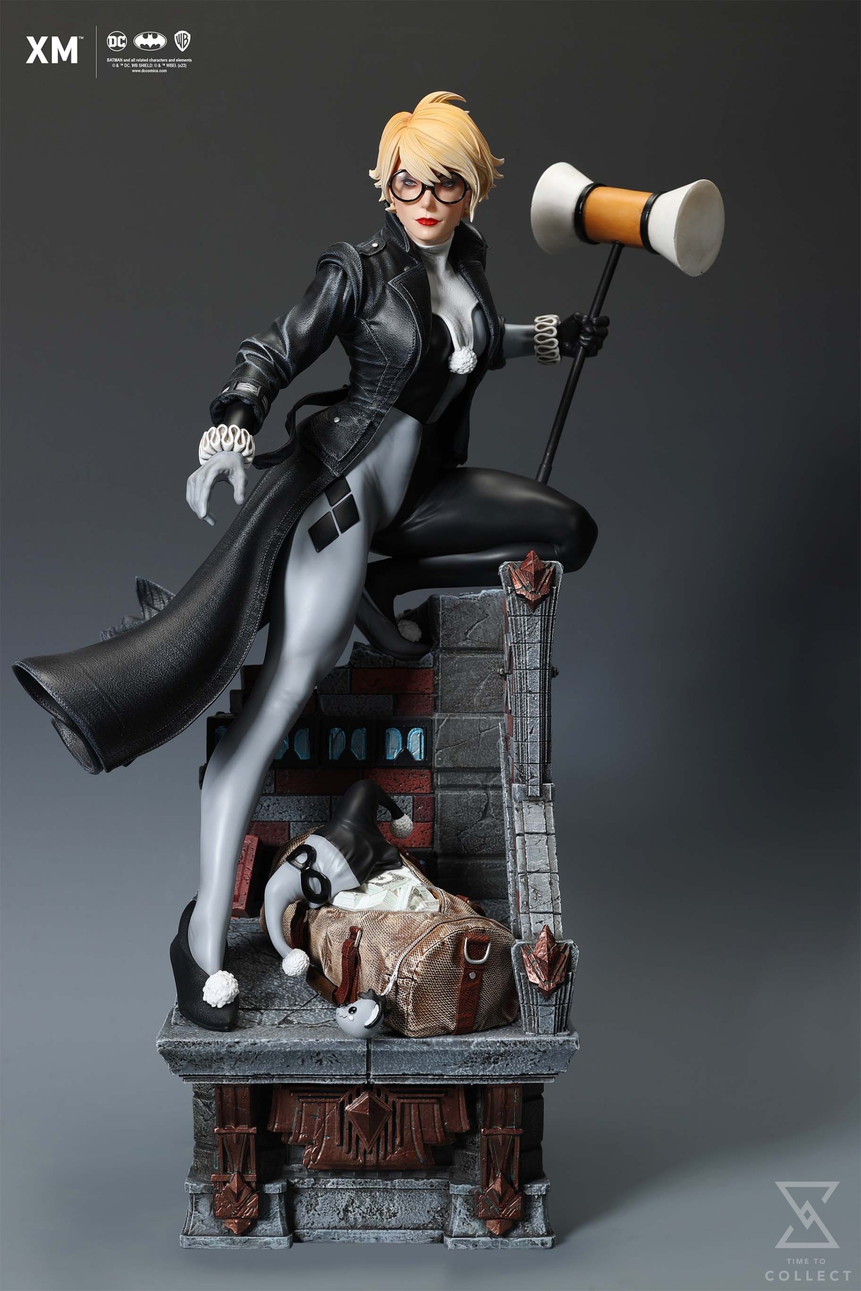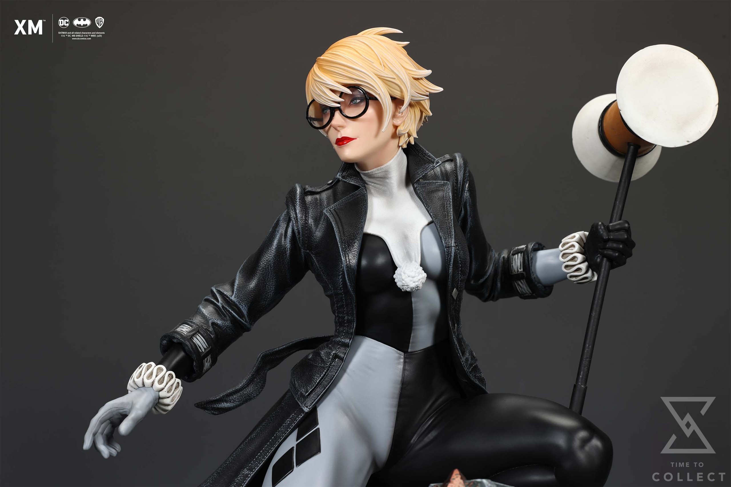 We’re excited to present XM’s next ¼ scale DC Premium Collectibles statue, Stealth Ver. Harley Quinn (Batman: White Knight)! Each painstakingly handcrafted statue is individually hand-painted with XM’s famous quality finish, and comes in a bold, dynamic, and story-laden style. For this statue, we worked directly with the Batman: White Knight comics’ original writer and artist, Sean Murphy, to capture details reflective of his art style that fans of the comic series would appreciate. This is reflected in everything from the art deco style architecture that makes up the base of the statue to the details that make up her outfit. Decked out in a leather trench coat that sways with the wind while sporting a pair of round glasses and differently coloured gloves, Harley is seen holding on to a wooden mallet while standing over a mysterious duffle bag filled with various peripherals. This statue is a beautiful companion piece to XM’s statue of The Joker from the same comic series by Sean Murphy and comes with 2 head switch outs, one featuring Harley Quinn wearing a jester’s hat and one featuring her without the hat. Collectors will be able to choose between 2 colour variants, a Regular Ver. featuring Harley in classic red and black colors and a Stealth Ver. where she is clad in grey and black.