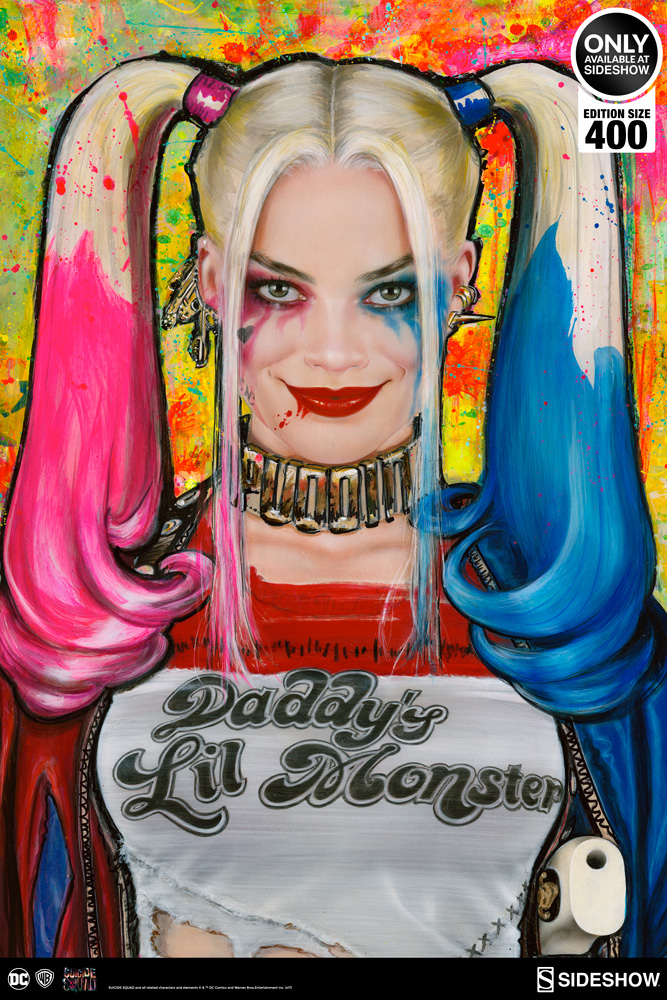 Sideshow is proud to present the officially licensed Harley Quinn: Daddy’s Lil Monster Premium Art Print featuring everyone’s favorite drop-dead gorgeous wild card. Bursting with bright colors, manic energy, and stunning realism, acclaimed artist Olivia De Berardinis captures every detail of Margot Robbie as she appeared in the Warner Bros. summer blockbuster, Suicide Squad.
