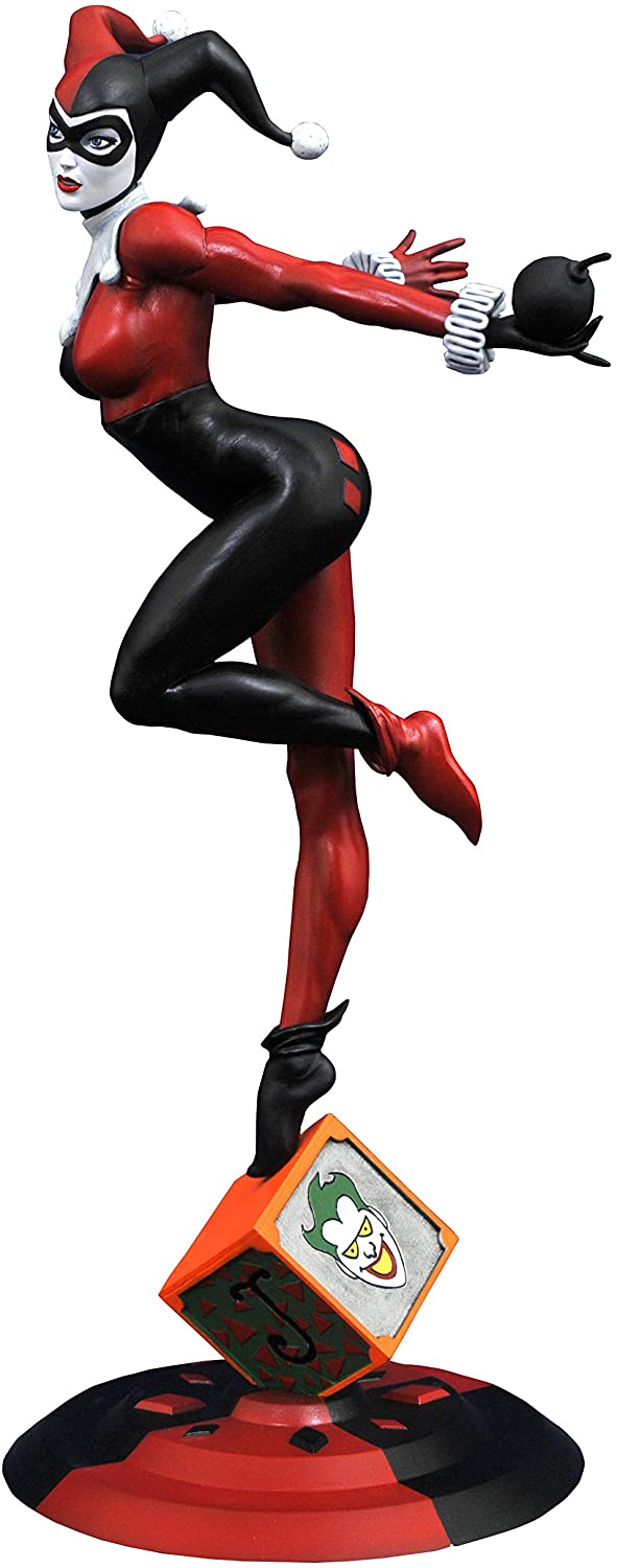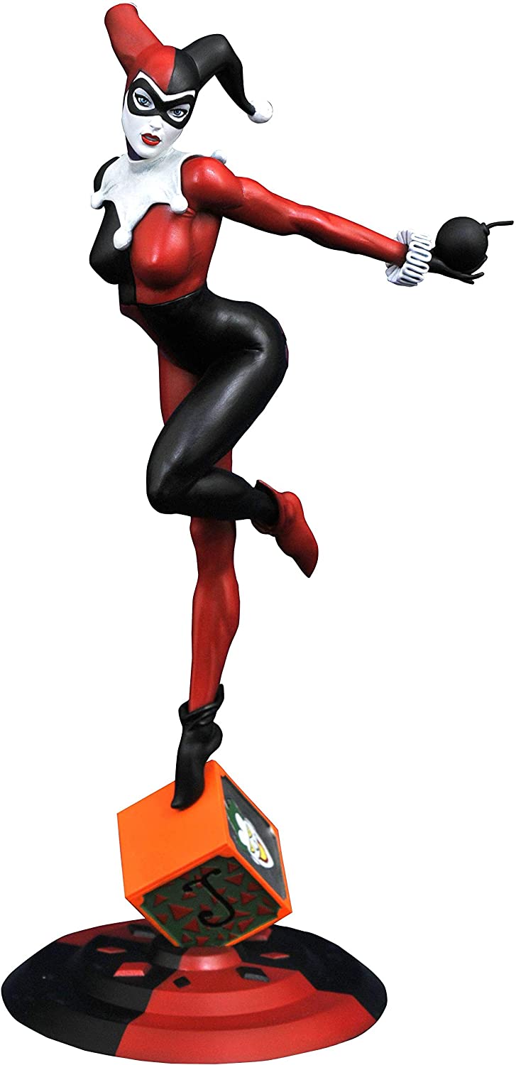 A Diamond Select Toys release! Harley Quinn is more famous for her roller-derby look nowadays, but her first-appearance look is a classic! Wearing her iconig red-and-black harlequin outfit, and balanced on a jack-in-the-box, this sculpture is made of high-quality PVC and features detailed sculpting and paint applications. It comes packaged in a full-color window box. Designed by Nelson X. Asencio, sculpted by Alejandro Pereira. Formerly a GameStop exclusive.