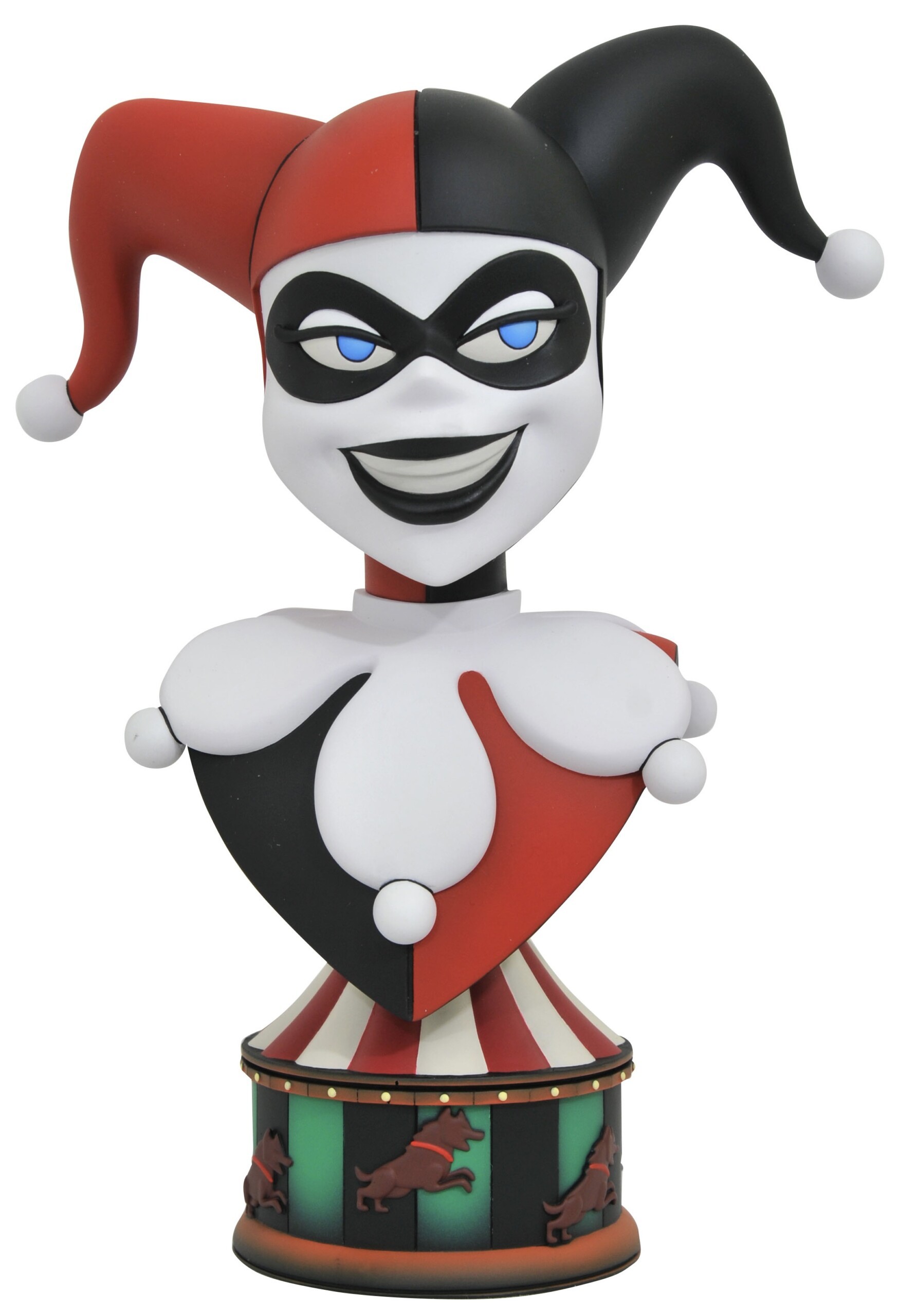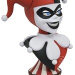 A Diamond Select Toys release! It’s time to rev up your Harley! The Legends in 3D line of half-scale busts continues with the next in a sequence based on Batman: The Animated Series – Harley Quinn! The Maiden of Mirth measures approximately 10 inches tall atop her circus pedestal, is limited to only 1,000 pieces and comes packaged in a full-color box with a hand-numbered certificate of authenticity. Designed by Joe Allard, sculpted by Varner Studios.