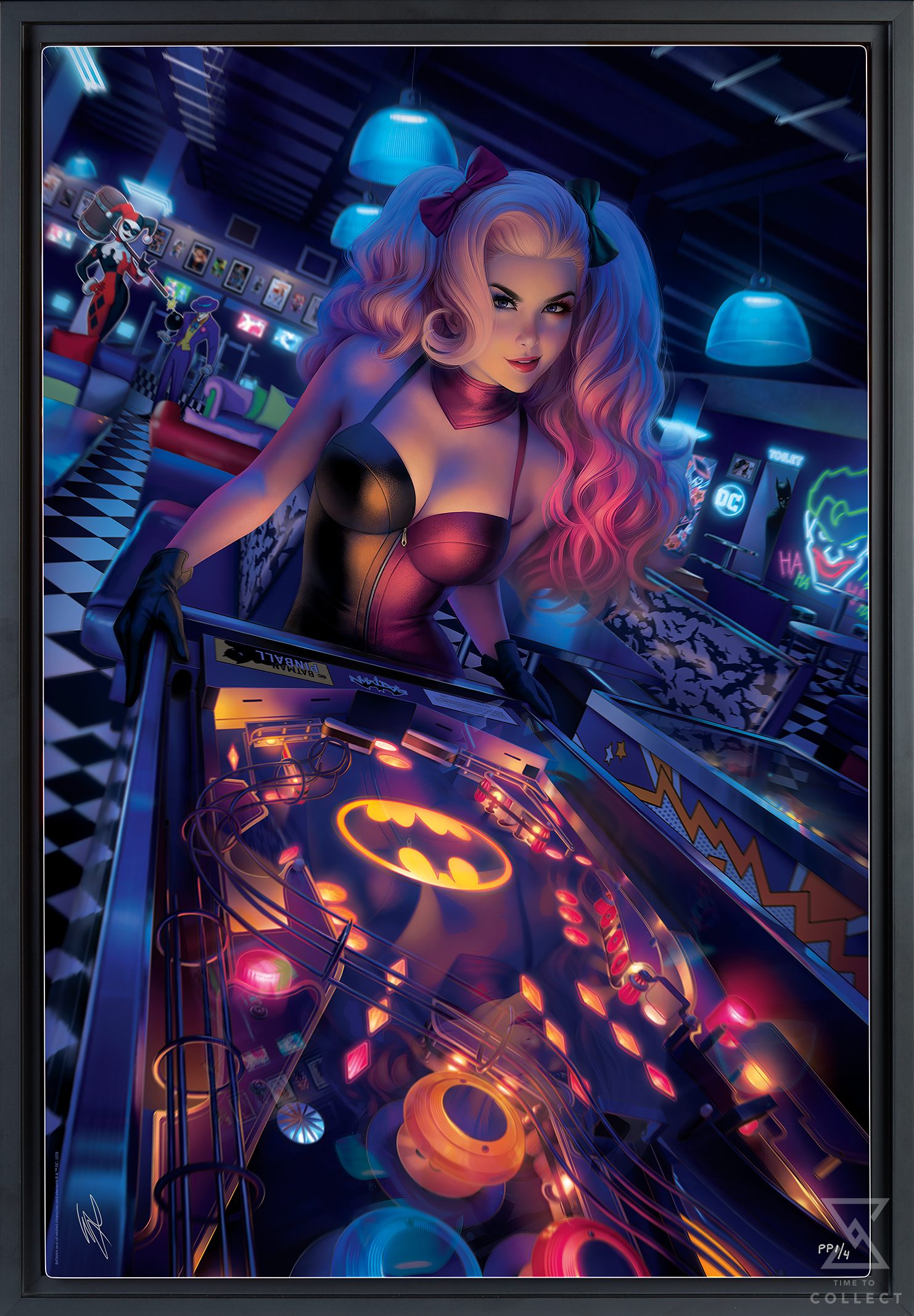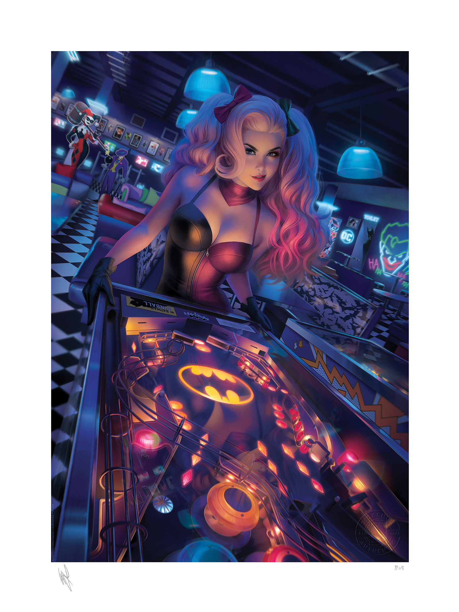 Get your quarters ready and bring home the Harley Quinn: Legends of the Dark Knight #1 Fine Art Print by Warren Louw today!