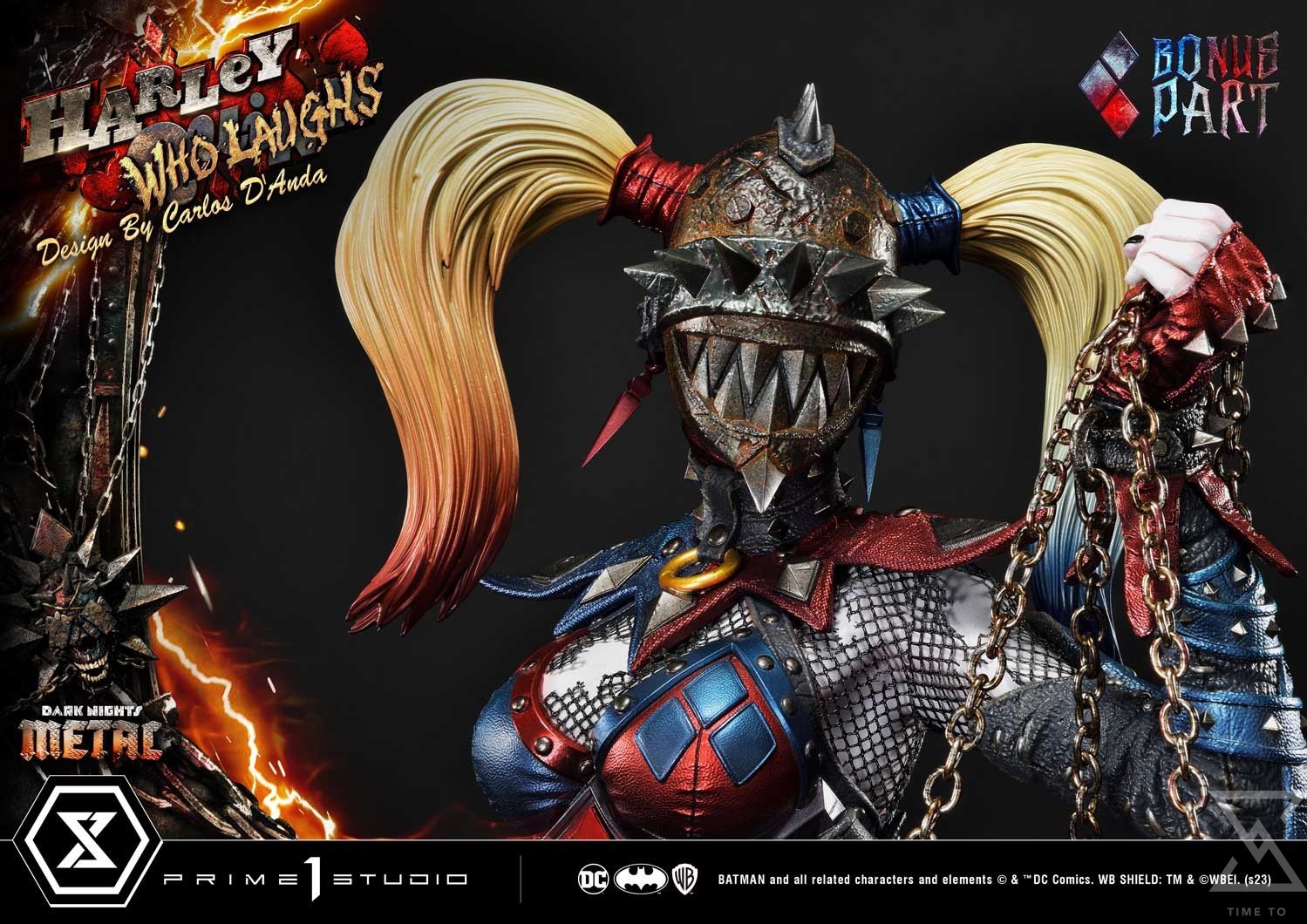 The Multiverse of Darkness harbors many variants of well-known characters from the franchise, but not only heroes are twisted into obscurity. Inspired by DC artist Carlos D’anda’s concept of Harley Quinn Who Laughs, Prime 1 Studio brings you this original rendition of the Clown Princess in one of her darkest incarnations.