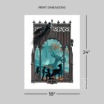 Something wicked this way comes! The Hogwarts grounds come to life at night as magical creatures, wizards, and witches walk among autumn leaves and Hagrid’s pumpkin patch. Front and center, Harry Potter and his godfather Sirius Black bid farewell while Hermione Granger and the hippogriff Buckbeak stand guard. The Whomping Willow and Harry’s Patronus, the stag, loom in the distance. And farther still is the fateful clock tower that strikes toward certain doom … or certain victory, if our favorite Gryffindors use the Time Turner right.