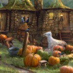 Hagrid’s hut, a small wooden dwelling, sits on the edge of the school grounds next to the Forbidden Forest. This one-room hut was a wholesome place, complete with cozy fire, large cups of tea, and of course, Fang, his loyal boarhound. Hermione, Ron, and Harry spent many afternoons at the hut, enjoying the company of Hagrid. Join Thomas Kinkade Studios as we spend an afternoon at Harry Potter™ Hagrid’s Hut.