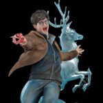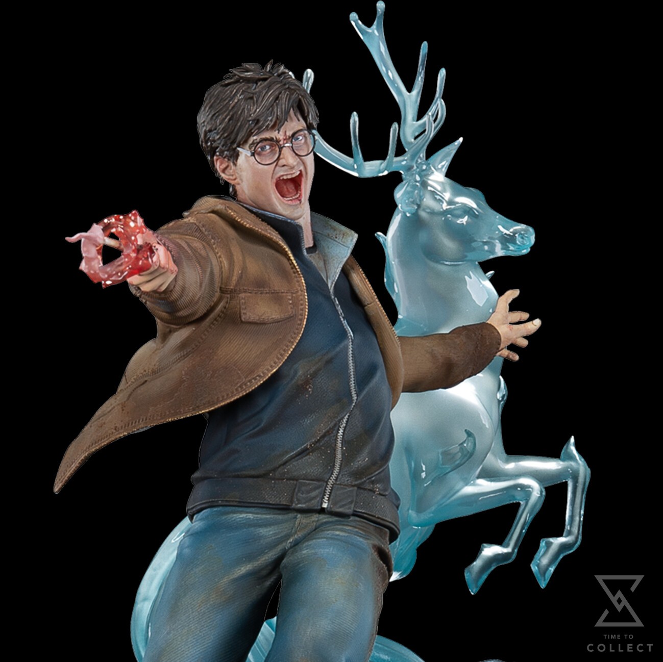 Iconic:The clash between light and darkness. We wanted to represent Harry through the values he carried throughout the saga: Hope, strength and courage. The determination on his face while casting his spell, his Patronus, identical to his father’s, representing a deer and finally this gargoyle with Griffon’s effigy, symbol of his house.