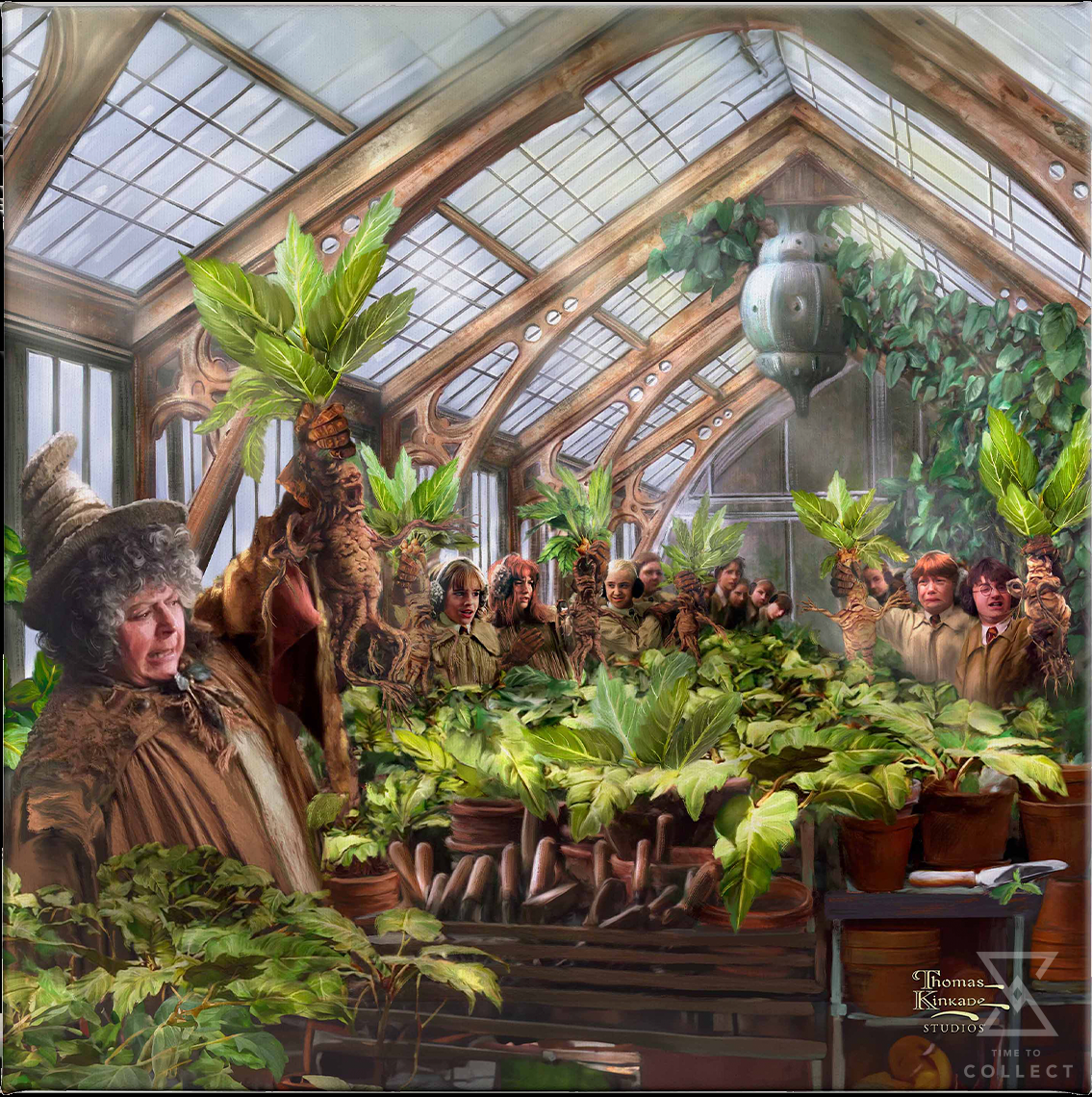 While enrolled at Hogwarts School of Witchcraft and Wizardry, students can visit the Hogwarts Greenhouse, where the students are taught Herbology by Professor Sprout. The greenhouse is home to wild, rare, and magical fungi and flora including Mandrakes. Join Thomas Kinkade Studios as we watch a Herbology class in Harry Potter™ Hogwarts Greenhouse™.